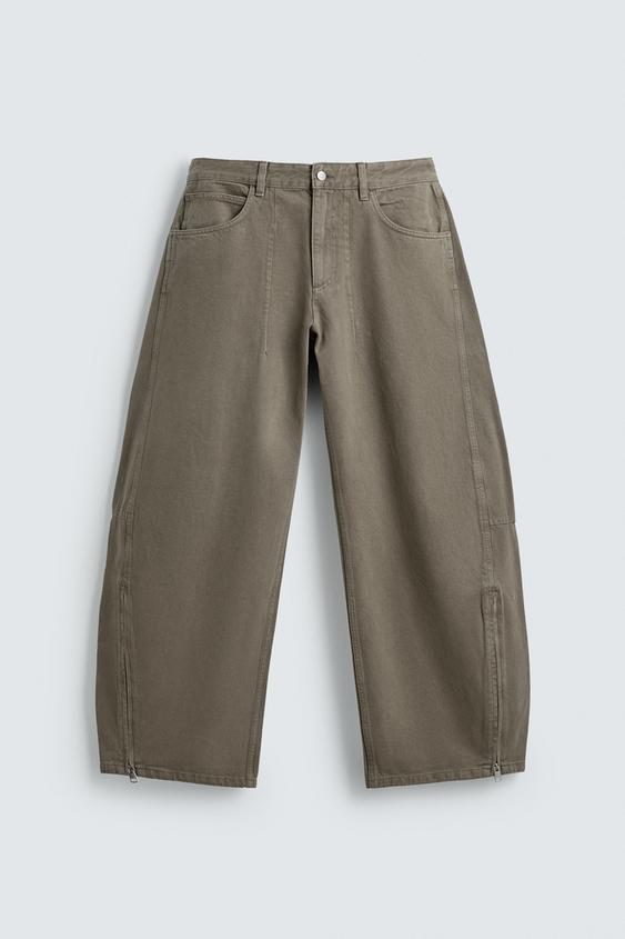 ZARA ДЖИНСЫ BALLOON FIT НА МОЛНИИ, РЫЖЕВАТО-КОРИЧНЕВЫЙ