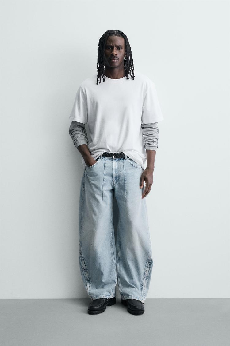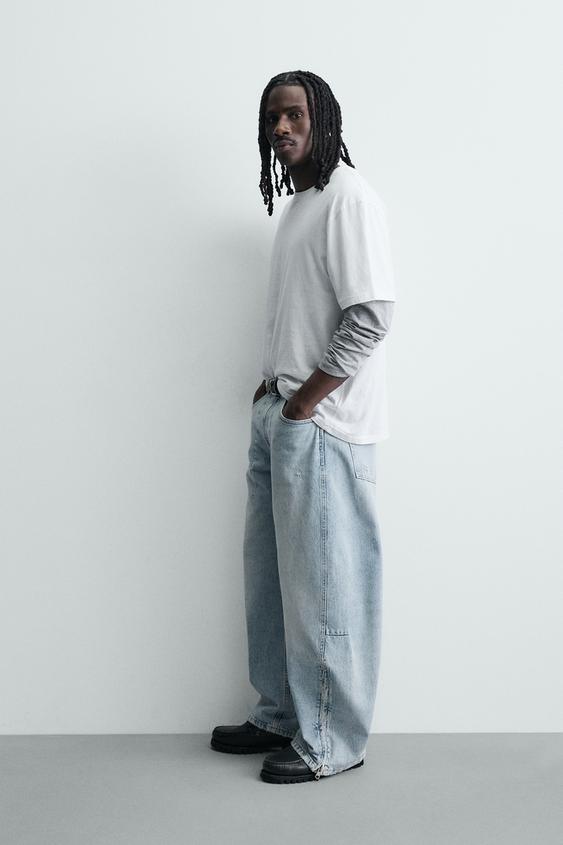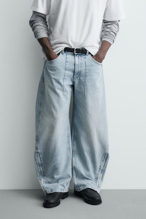 ZARA ДЖИНСЫ BALLOON FIT НА МОЛНИИ, ЗЕЛЕНОВАТО-СИНИЙ