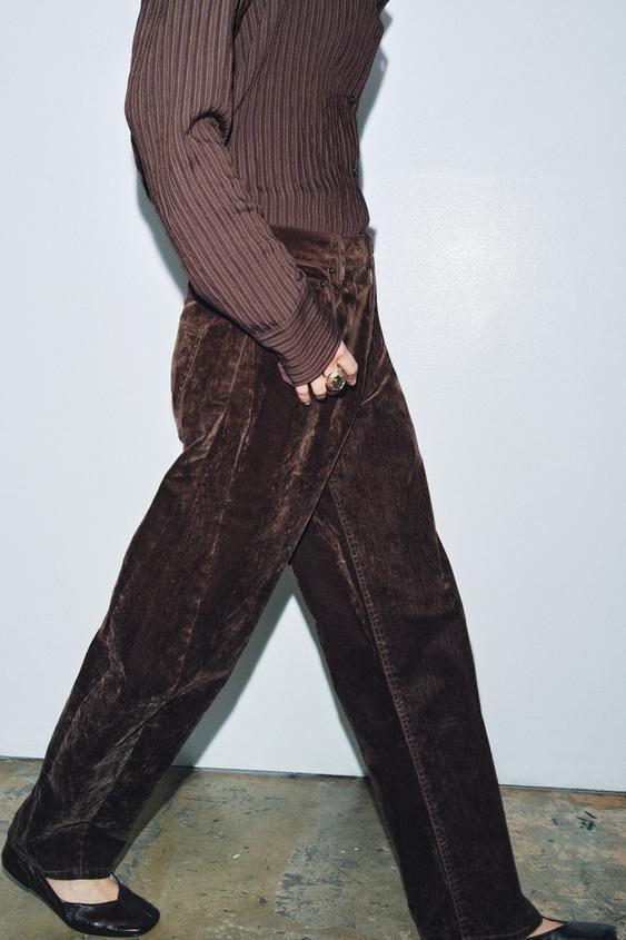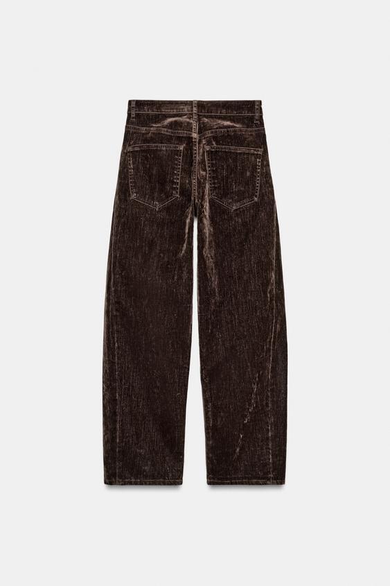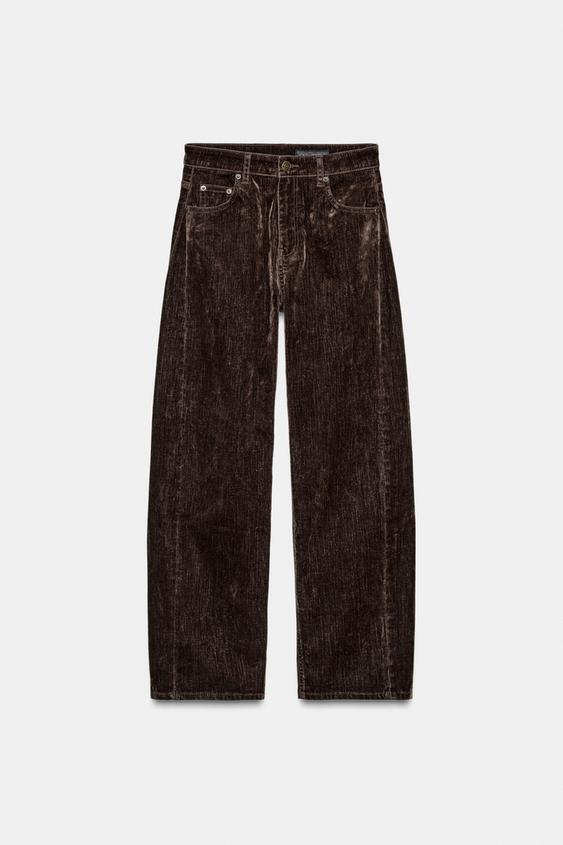 ZARA ДЖИНСЫ BALLOON-FIT С ВЫСОКОЙ ПОСАДКОЙ И ФЛОКИРОВАНИЕМ — ZW COLLECTION, КОРИЧНЕВЫЙ