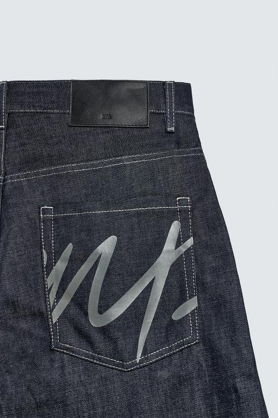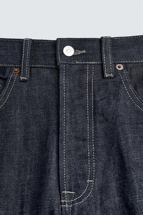 Джинсы из хлопкового денима без предварительной стирки. Это придает им жесткий вид во время первого использования, который со временем исчезает в процессе носки. Свободный крой от бедра, слегка сужающийся к низу. Средняя посадка. Плотная ткань.
