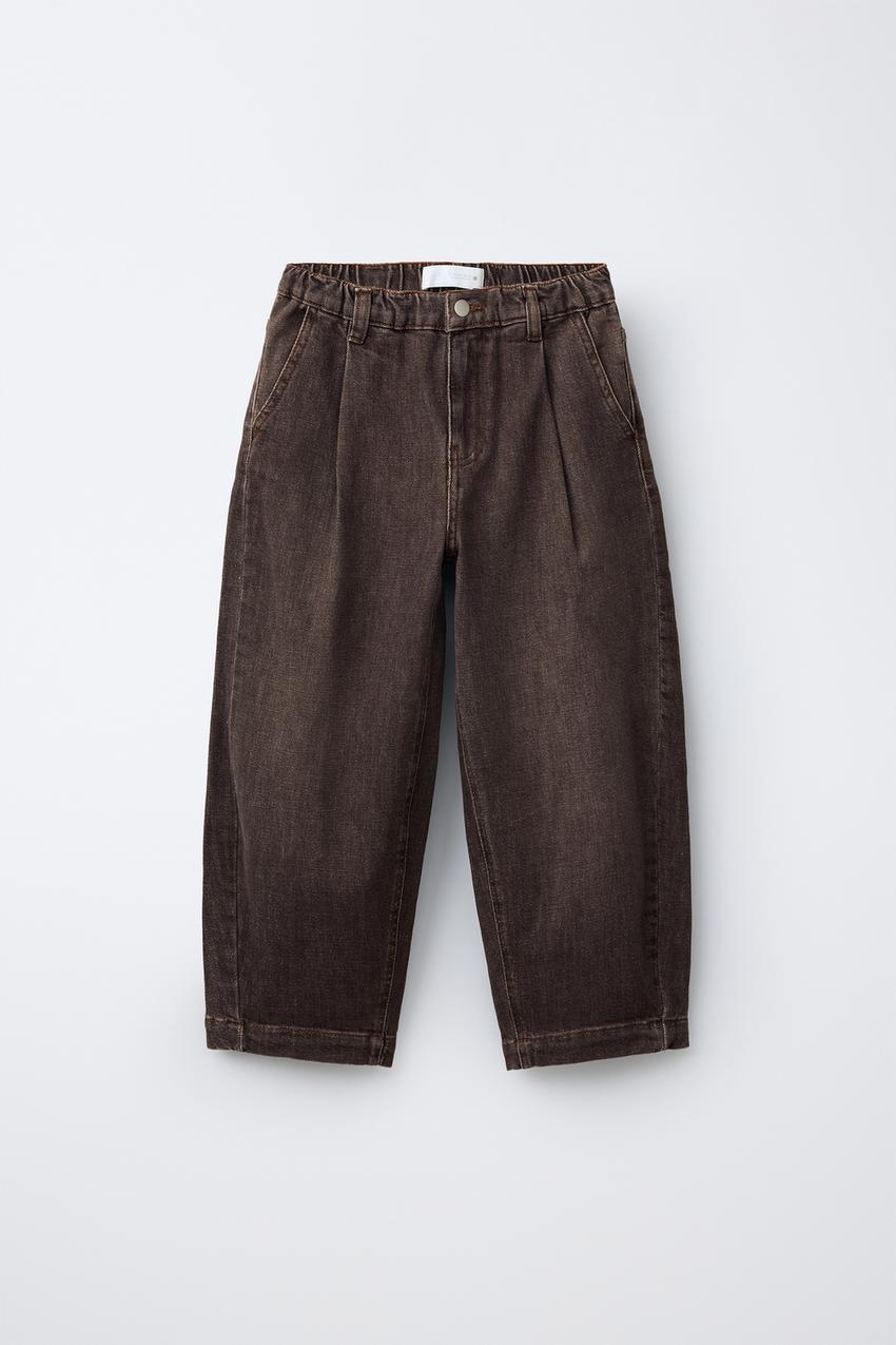 ZARA ДЖИНСЫ BALLOON С ЭФФЕКТОМ ПОТЕРТОСТИ, КОРИЧНЕВЫЙ
