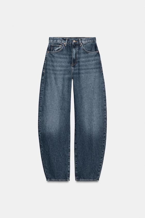 ZARA ДЖИНСЫ BALLOON С ВЫСОКОЙ ПОСАДКОЙ — ZW COLLECTION, СИНИЙ