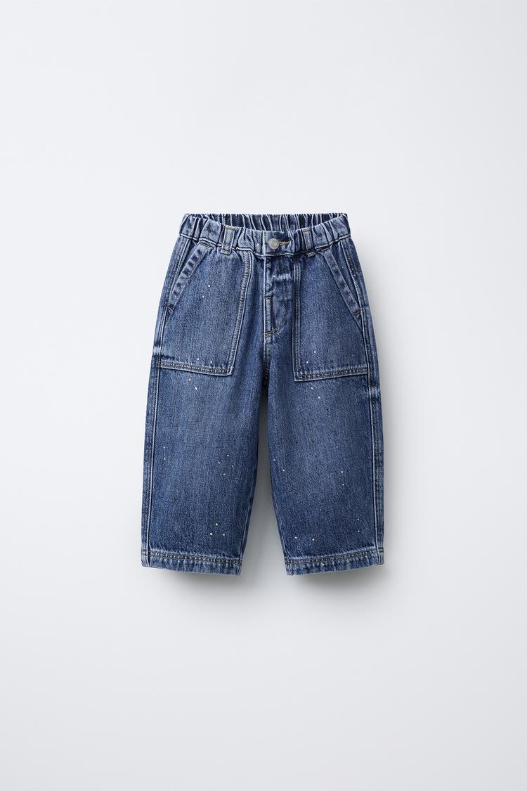 ZARA ДЖИНСЫ BALLOON В ГОРОШЕК, СИНИЙ