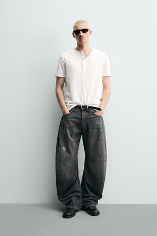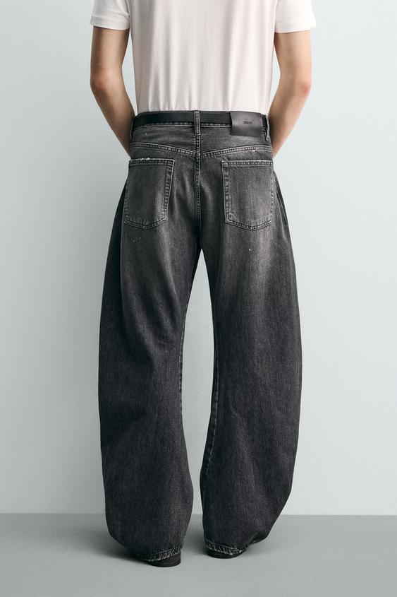 ZARA ДЖИНСЫ BARREL FIT С ДЕКОРАТИВНЫМИ ШВАМИ, УГОЛЬНЫЙ