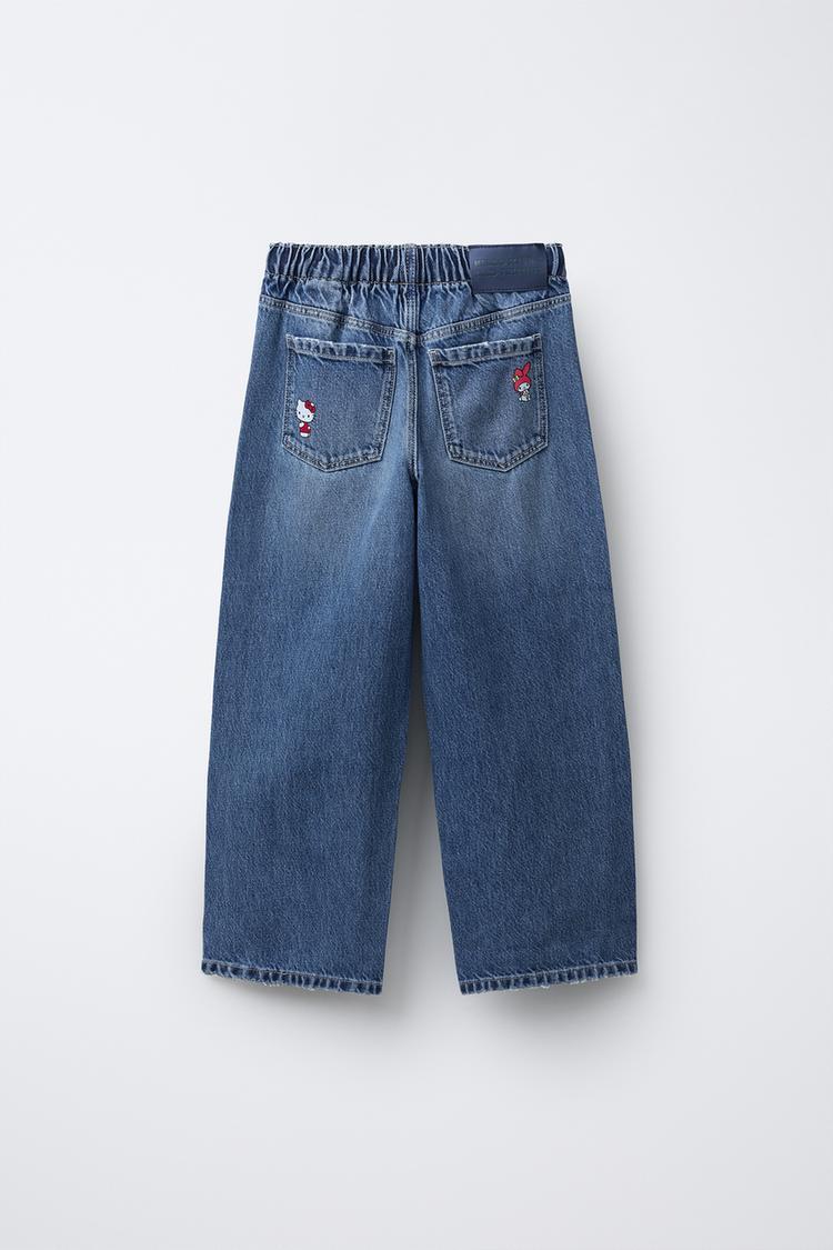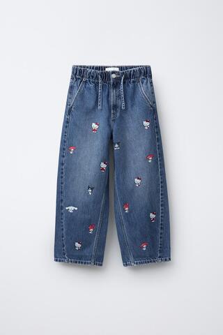 ZARA ДЖИНСЫ BARREL HELLO KITTY © SANRIO, СИНИЙ