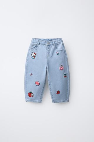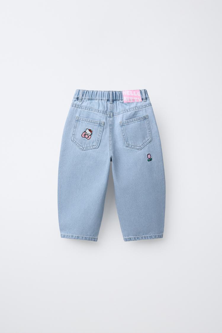 ZARA ДЖИНСЫ BARREL HELLO KITTY ©SANRIO, СИНИЙ