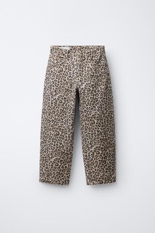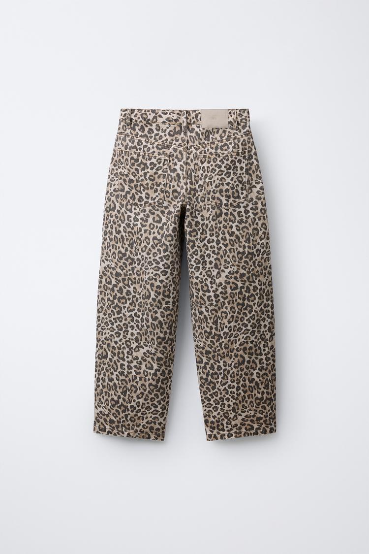 ZARA ДЖИНСЫ BARREL С АНИМАЛИСТИЧЕСКИМ ПРИНТОМ, КОРИЧНЕВЫЙ