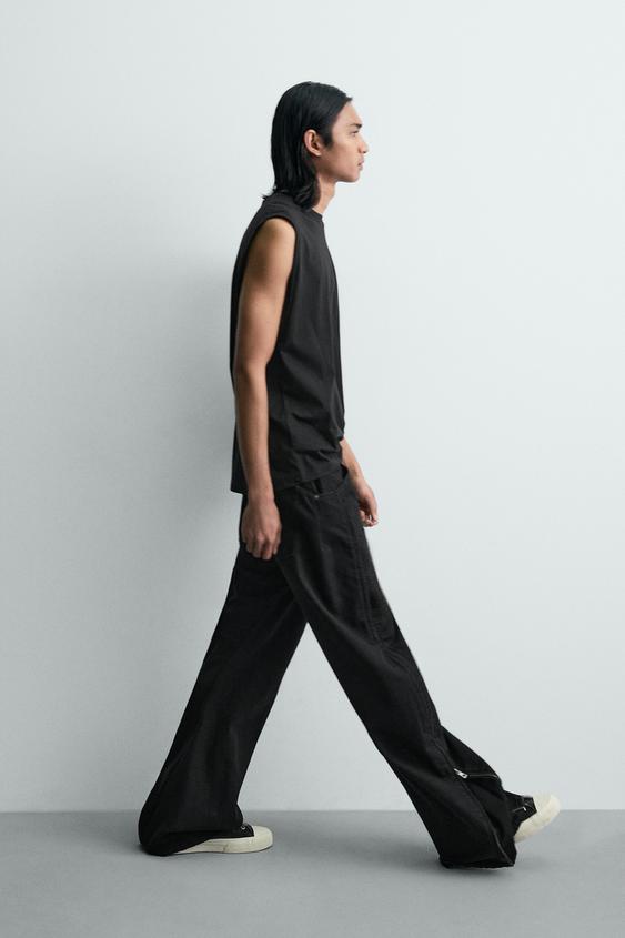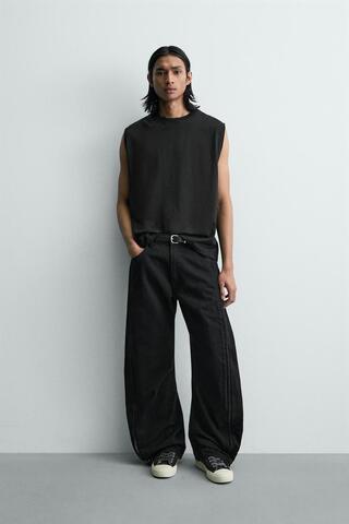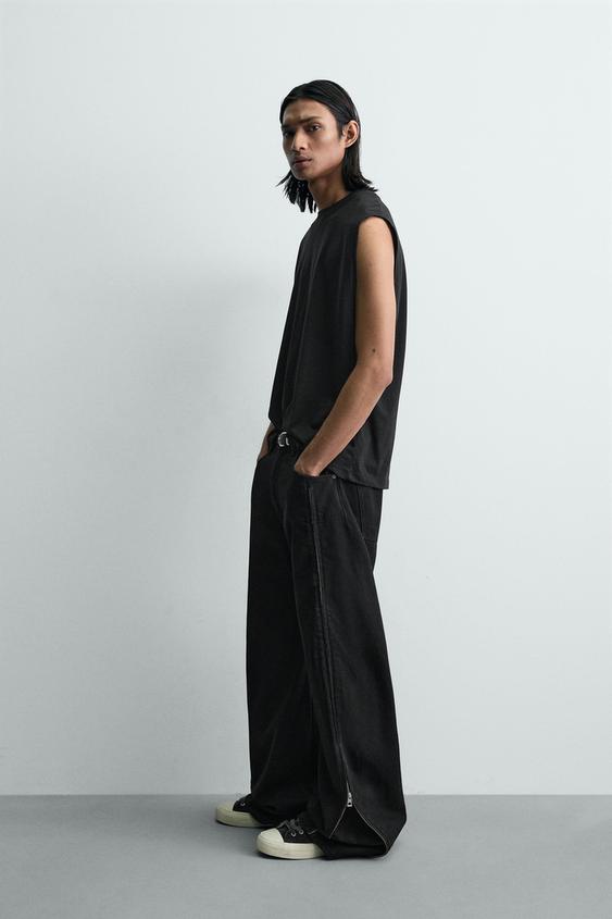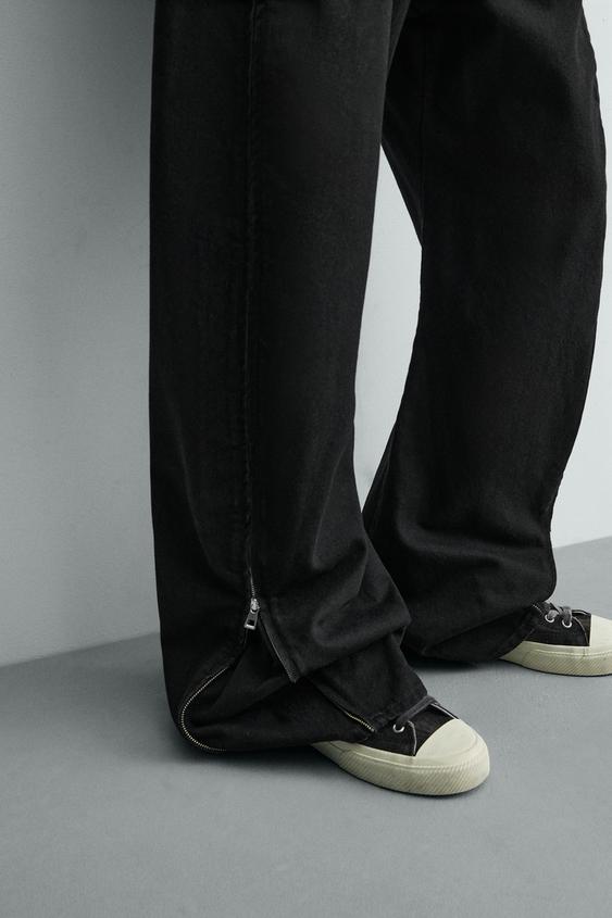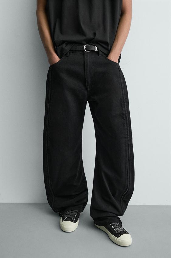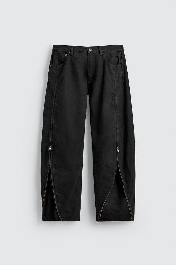 ZARA ДЖИНСЫ BARREL С МОЛНИЯМИ, ЧЕРНЫЙ