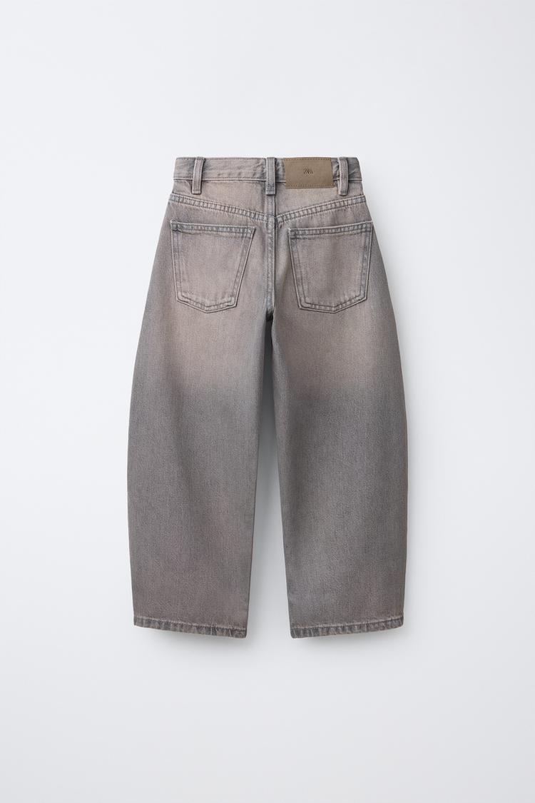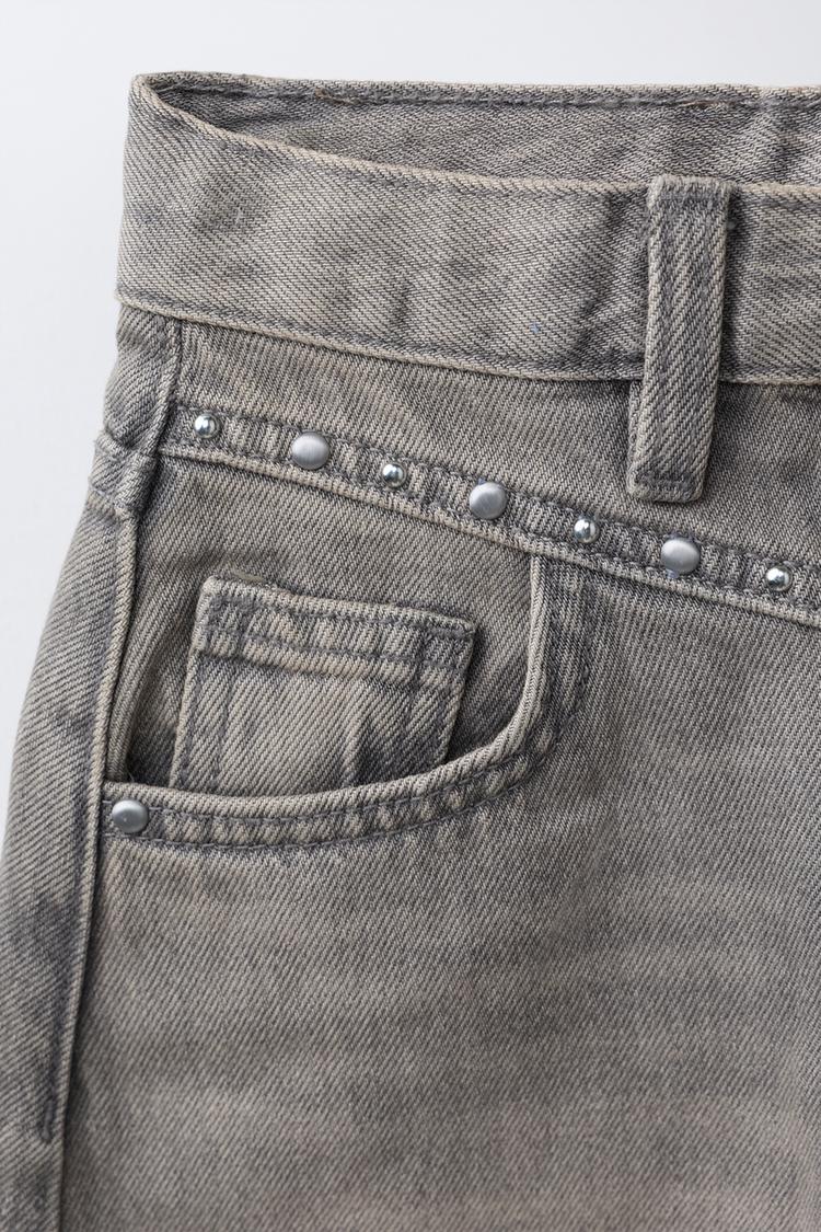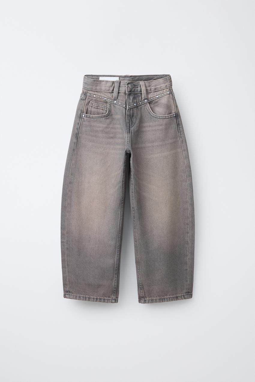 ZARA ДЖИНСЫ BARREL С ЗАКЛЕПКАМИ, СЕРО-КОРИЧНЕВЫЙ