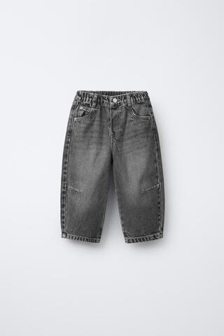 ZARA ДЖИНСЫ BARREL С ЗАЩИПАМИ, СЕРЫЙ