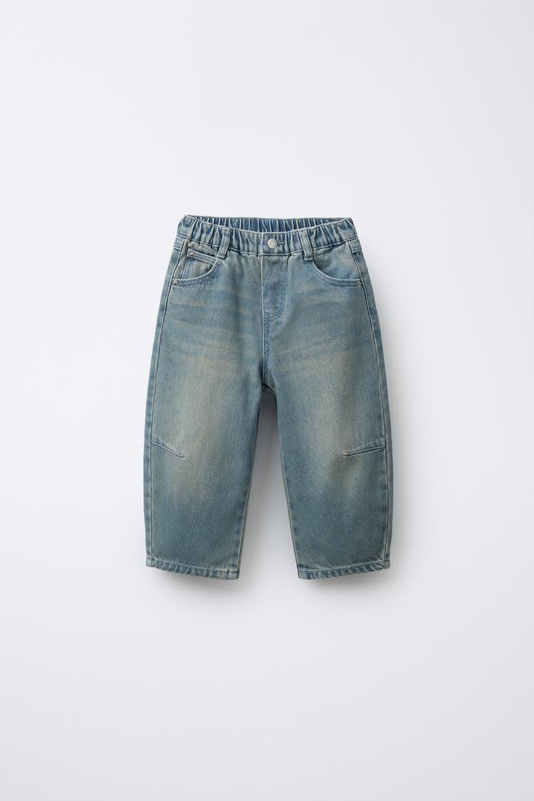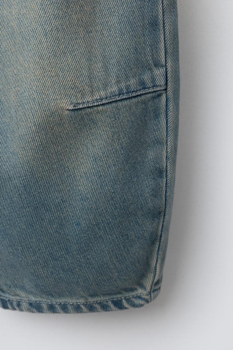 ZARA ДЖИНСЫ BARREL С ЗАЩИПАМИ, ЗЕЛЕНОВАТО-СИНИЙ