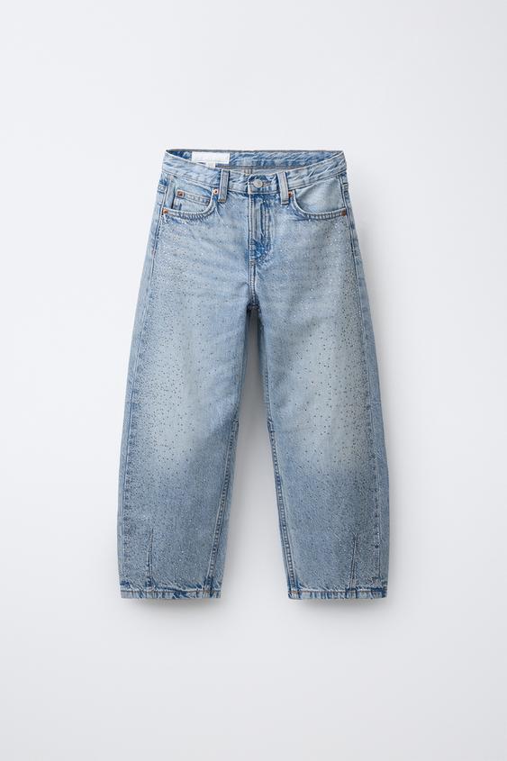 ZARA ДЖИНСЫ BARREL СО СТРАЗАМИ, ГОЛУБОЙ