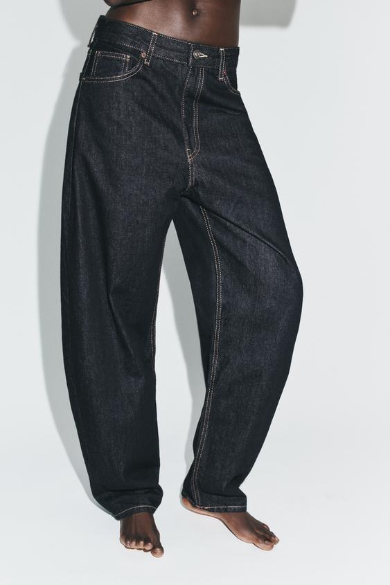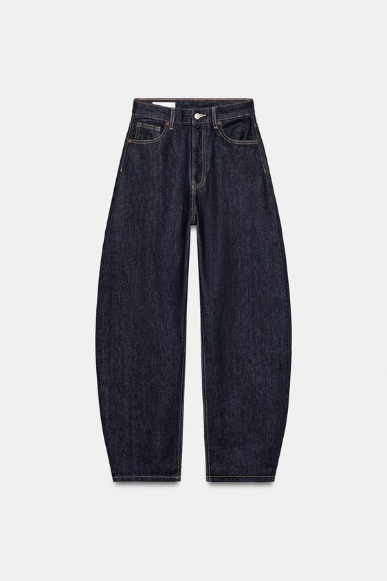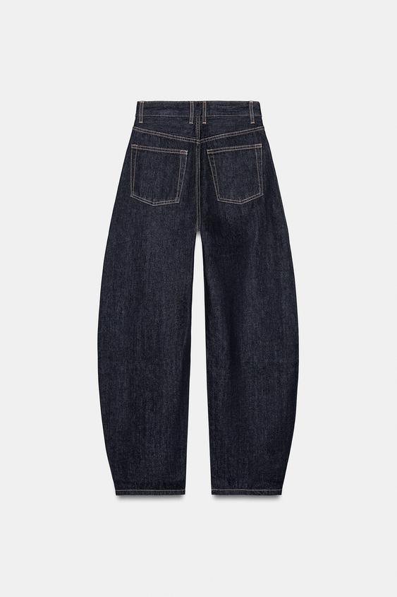 ZARA ДЖИНСЫ BARREL TRF С ВЫСОКОЙ ПОСАДКОЙ, ТЕМНЫЙ ИНДИГО