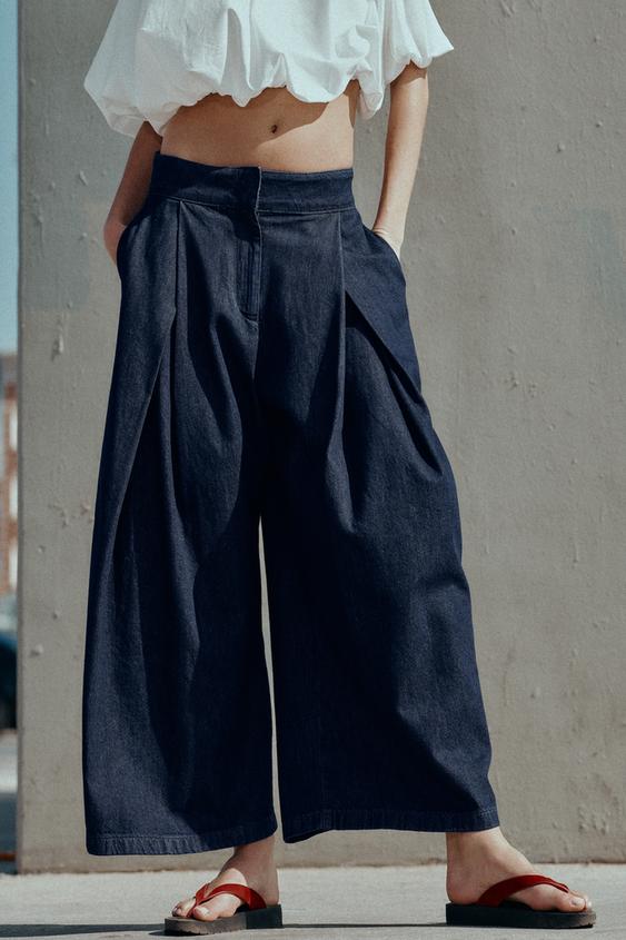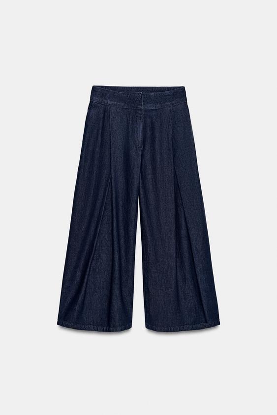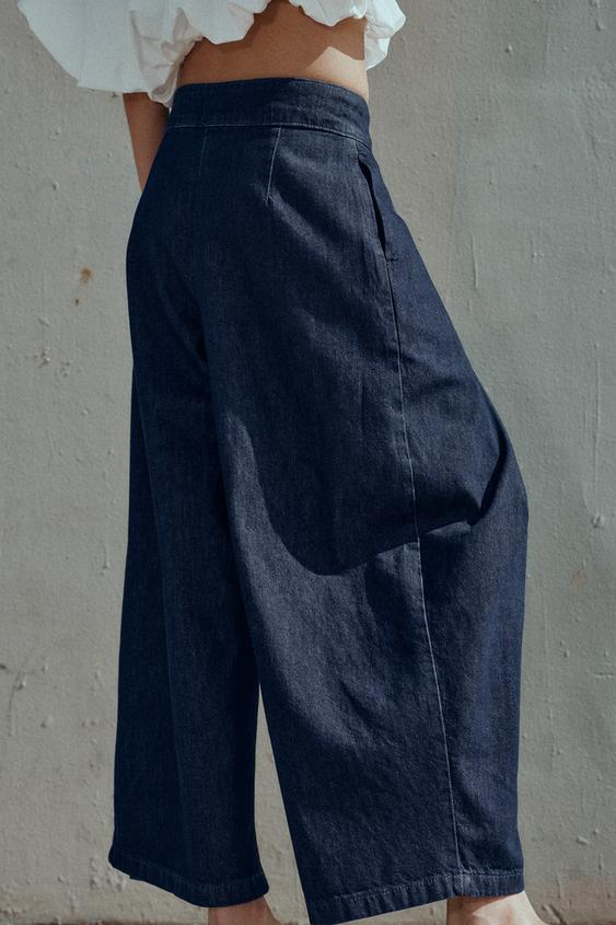 ZARA ДЖИНСЫ-КЮЛОТЫ Z1975 С ВЫСОКОЙ ПОСАДКОЙ И ЗАЩИПАМИ, СИНИЙ