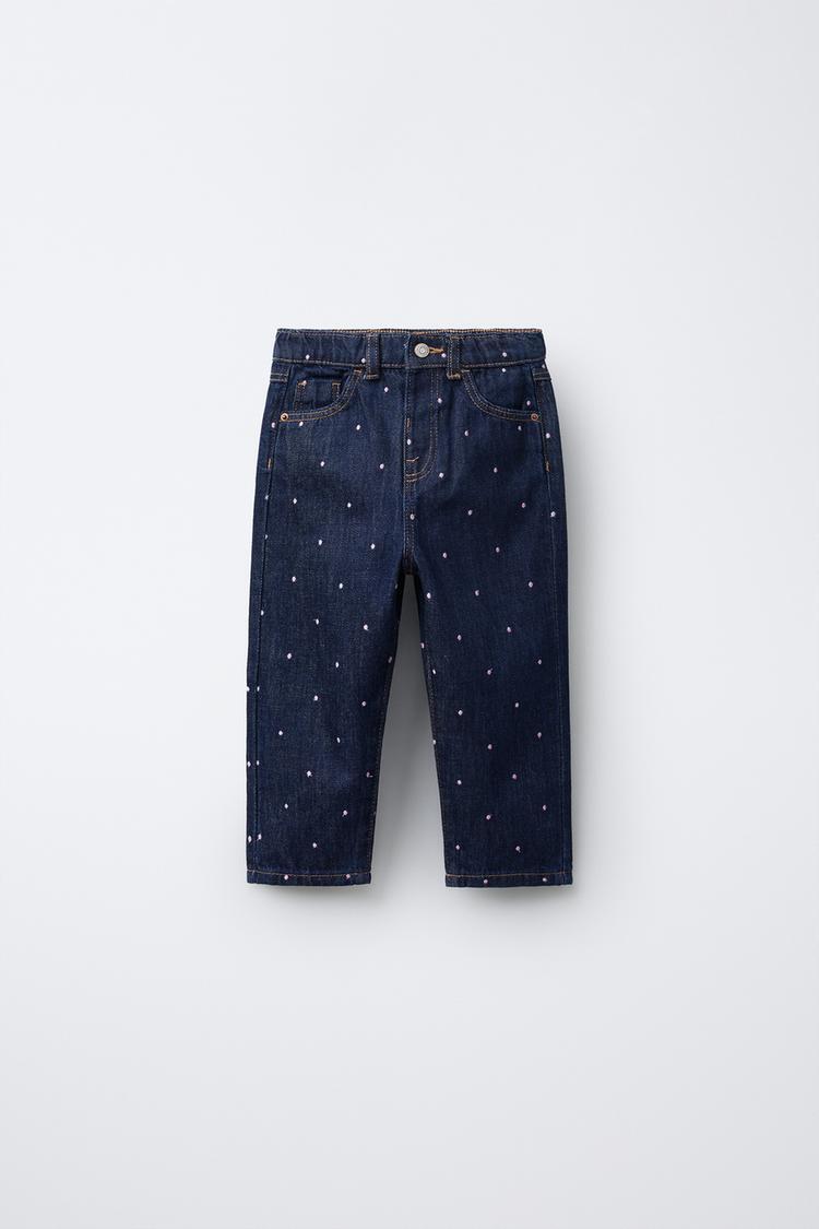 ZARA ДЖИНСЫ MOM FIT С ВЫШИВКОЙ, ВЫЦВЕТШИЙ СИНИЙ