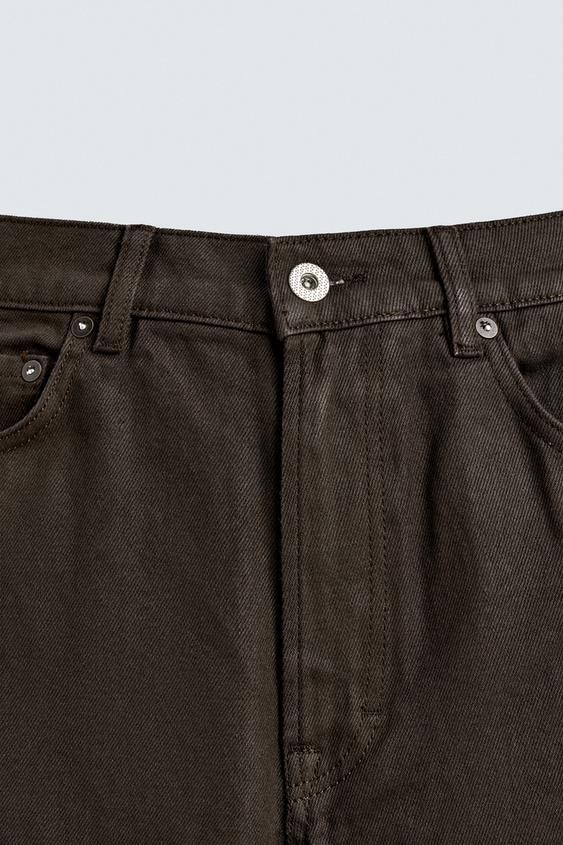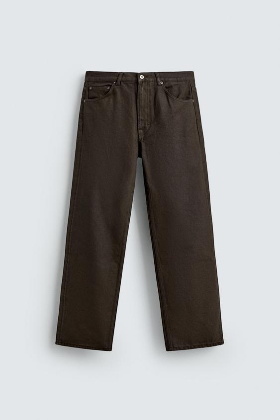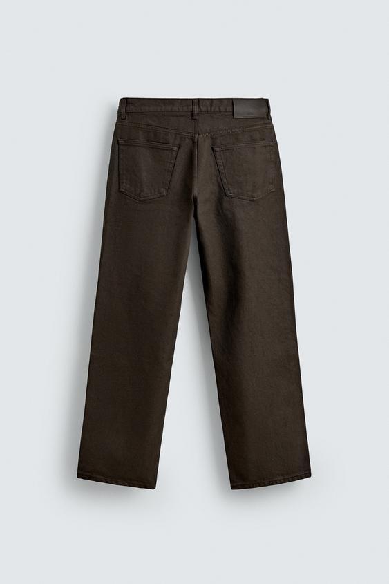 ZARA ДЖИНСЫ ПРЯМОГО КРОЯ С ВОЩЕНЫМ ПОКРЫТИЕМ, ШОКОЛАДНЫЙ