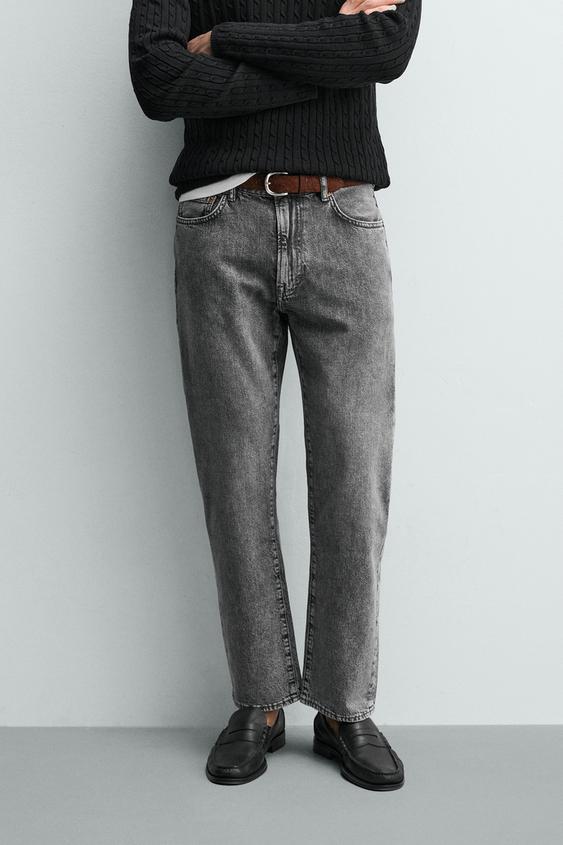 ZARA ДЖИНСЫ REGULAR FIT ОБЛЕГЧЕННЫЕ, СЕРЫЙ