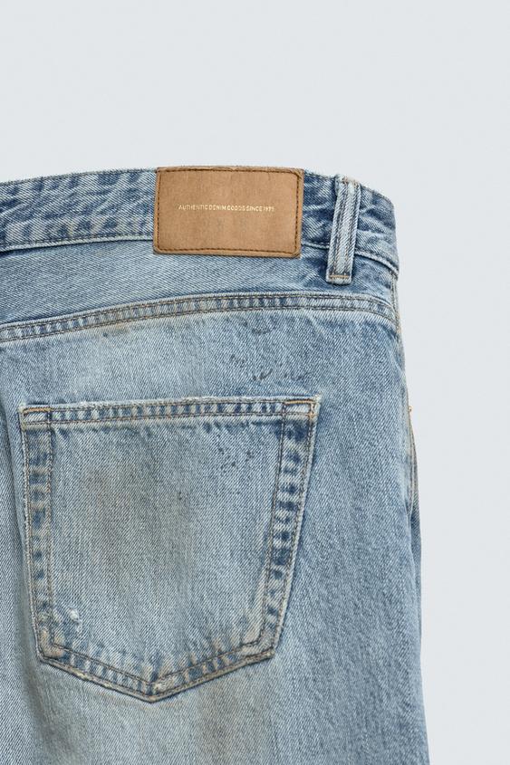 Заужены в области штанин сильнее, чем наша базовая модель прямого кроя. Прямые штанины от бедра до щиколотки, не сужающиеся и не расширяющиеся. Средняя посадка. Плотная ткань. Джинсы прямого кроя из хлопкового денима. Пять карманов. Винтажный эффект потертости с разрезами по всей длине изделия. Застежка на пуговицы спереди.