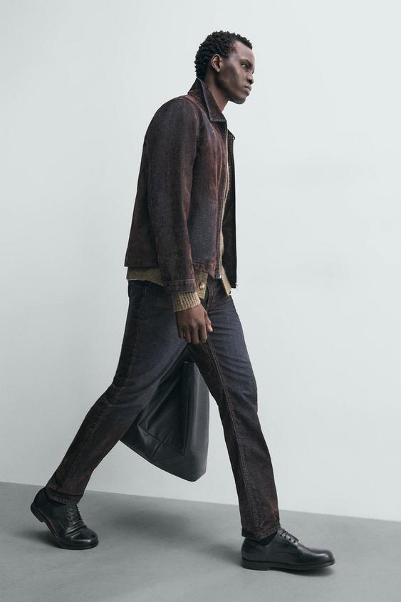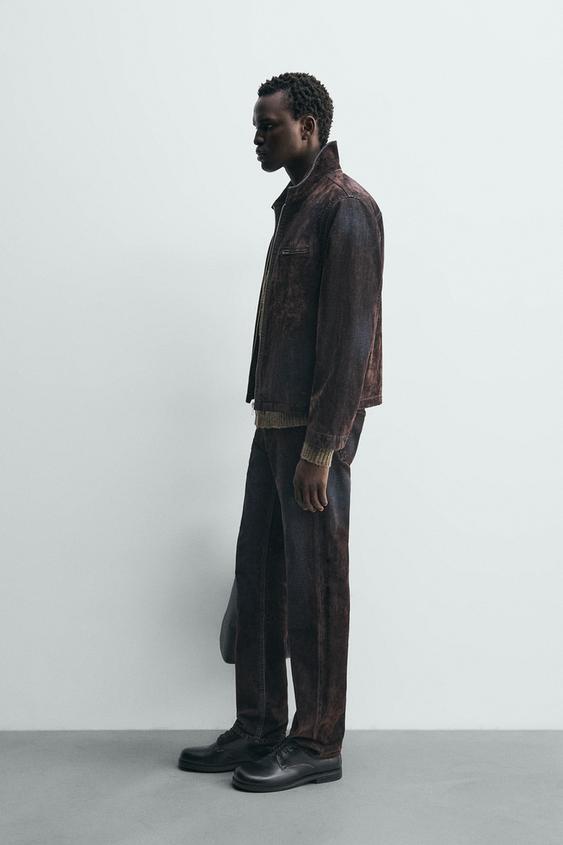 ZARA ДЖИНСЫ RELAXED FIT С ФЛОКИРОВАНИЕМ ПОД БАРХАТ, КОРИЧНЕВЫЙ