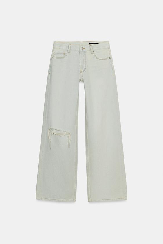 ZARA ДЖИНСЫ RELAXED-FIT С НИЗКОЙ ПОСАДКОЙ И РАЗРЫВАМИ — ZW COLLECTION, ГОЛУБОЙ