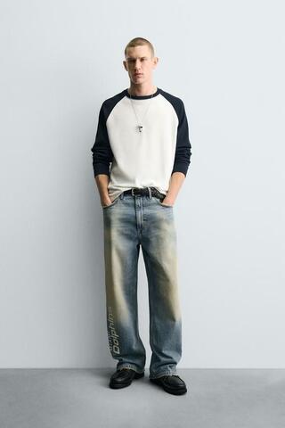 ZARA ДЖИНСЫ RELAXED FIT С ВЫШИВКОЙ NFL MIAMI DOLPHINS, ВЫЦВЕТШИЙ СИНИЙ