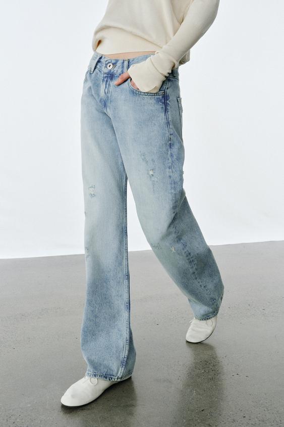 ZARA ДЖИНСЫ RELAXED STRAIGHT С НИЗКОЙ ПОСАДКОЙ — ZW COLLECTION, СИНИЙ