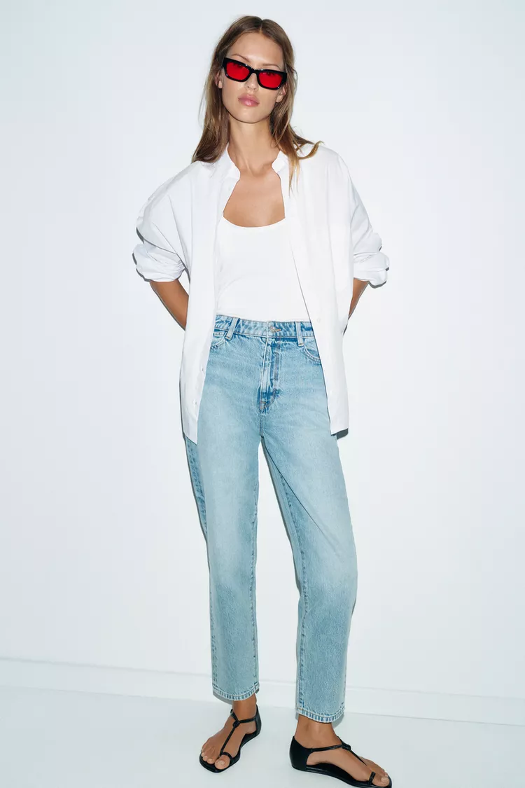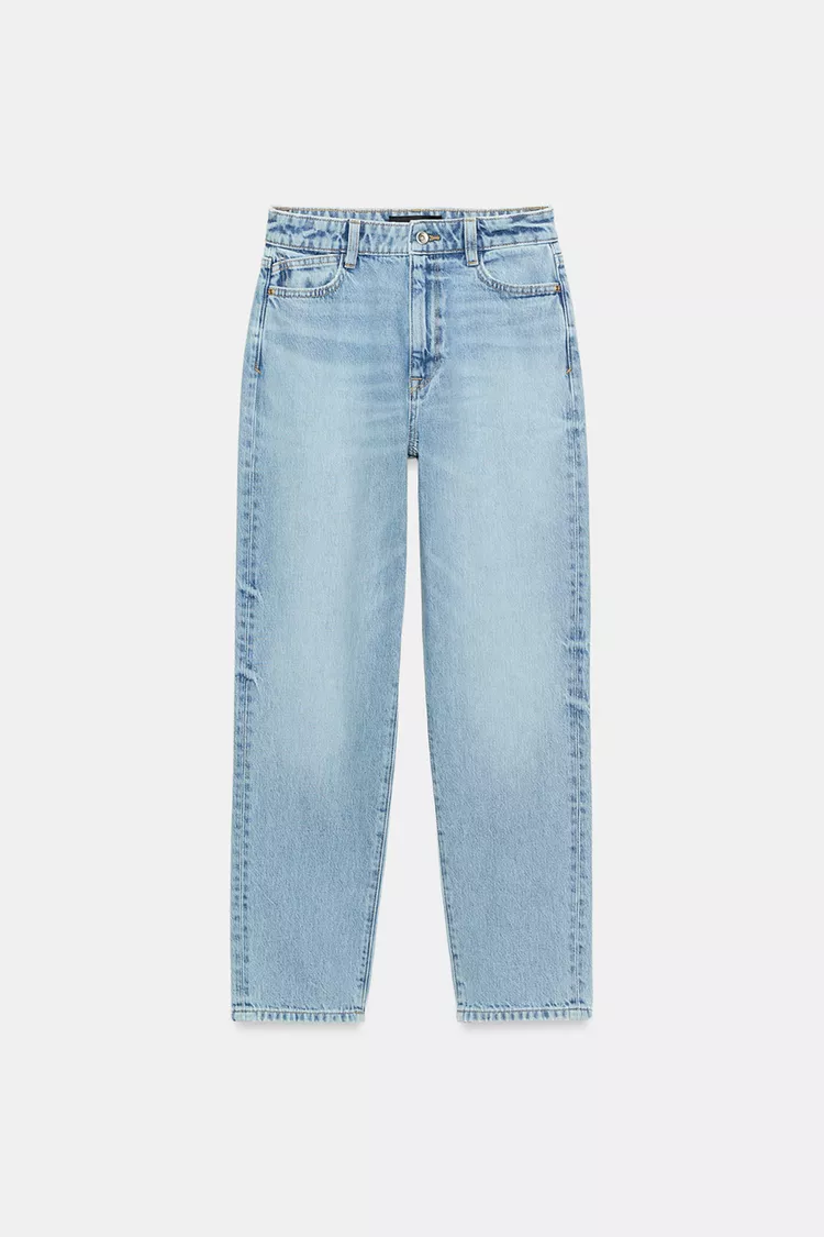 ZARA ДЖИНСЫ Z1975 MOM FIT С ВЫСОКОЙ ПОСАДКОЙ, ВЫЦВЕТШИЙ СИНИЙ
