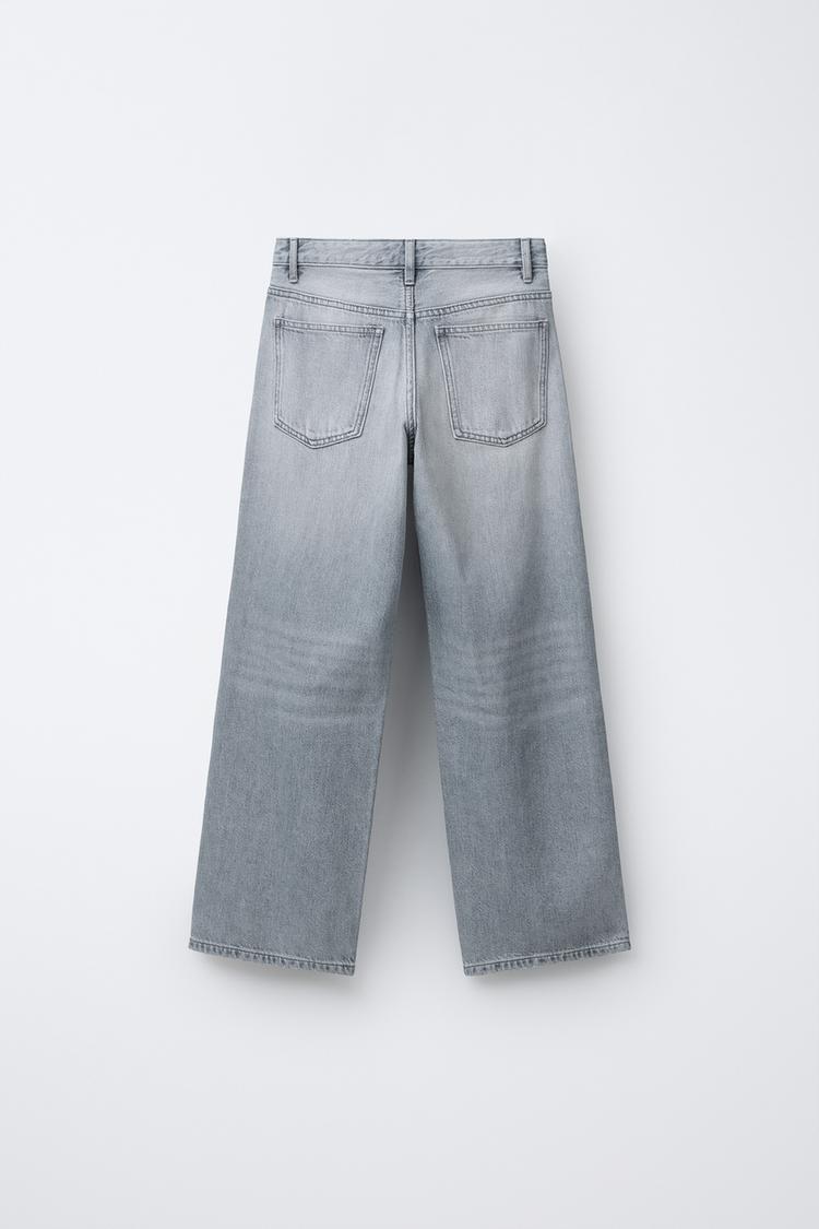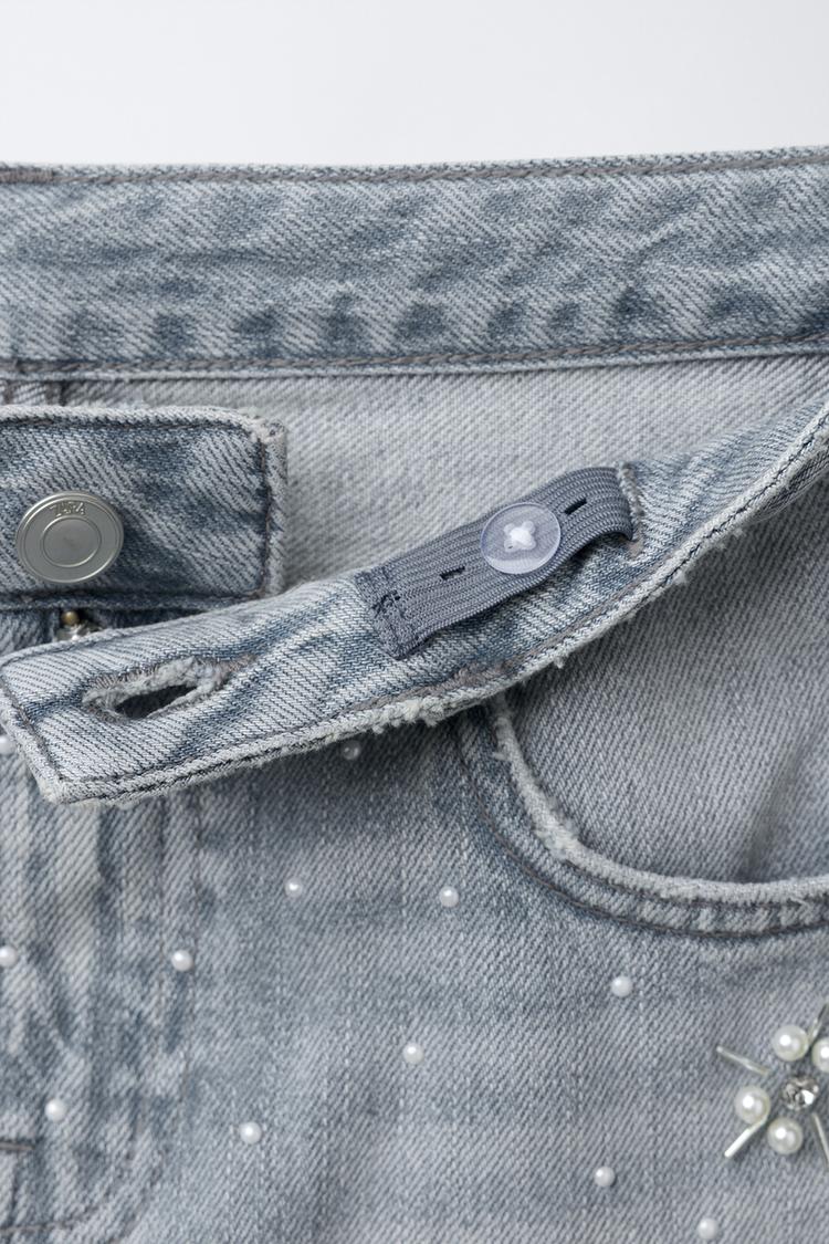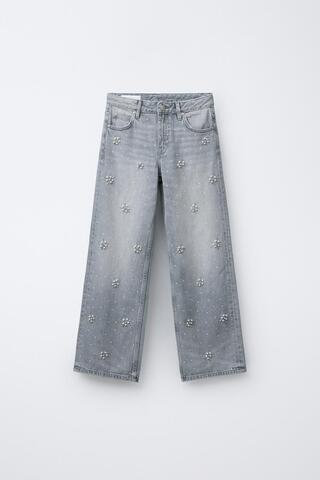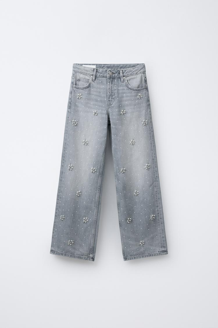 ZARA ДЖИНСЫ ШИРОКОГО КРОЯ СО СТРАЗАМИ И ЖЕМЧУЖИНАМИ, СИНИЙ