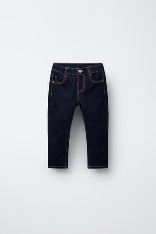 Джинсы скинни с регулируемым внутренним поясом и застежкой на пуговицу в форме сердца спереди. Карманы спереди и накладные карманы сзади.