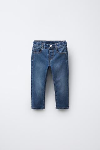 Джинсы скинни с регулируемым внутренним поясом и застежкой на пуговицу в форме сердца спереди. Карманы спереди и накладные карманы сзади.