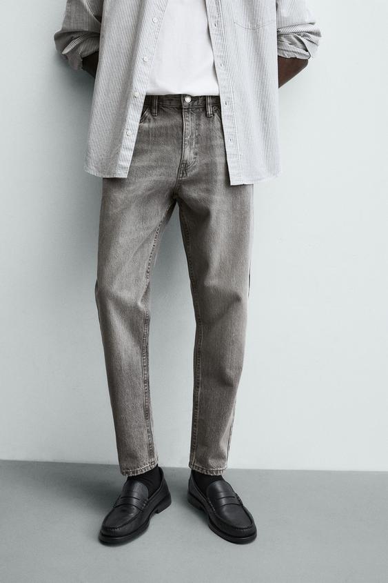 ZARA ДЖИНСЫ SLIM TAPERED FIT, СЕРЫЙ