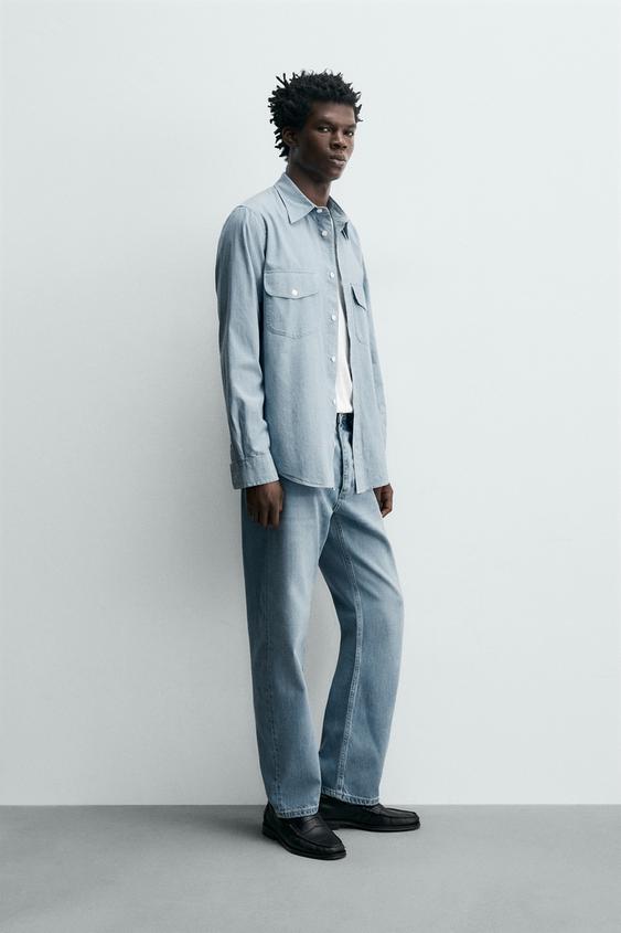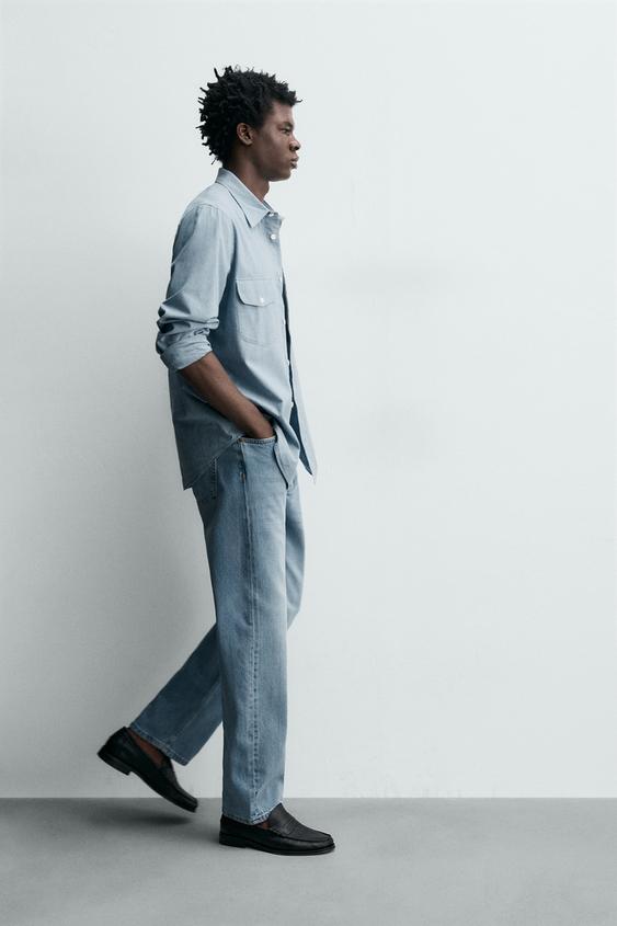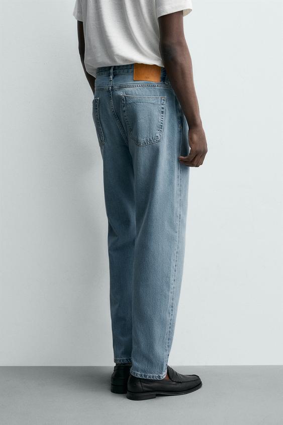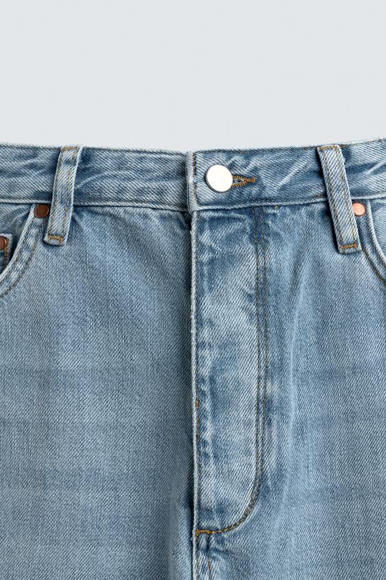 ZARA ДЖИНСЫ STRAIGHT ANKLE FIT ИЗ ХЛОПКА И ЛИОЦЕЛЛА, ГОЛУБОЙ