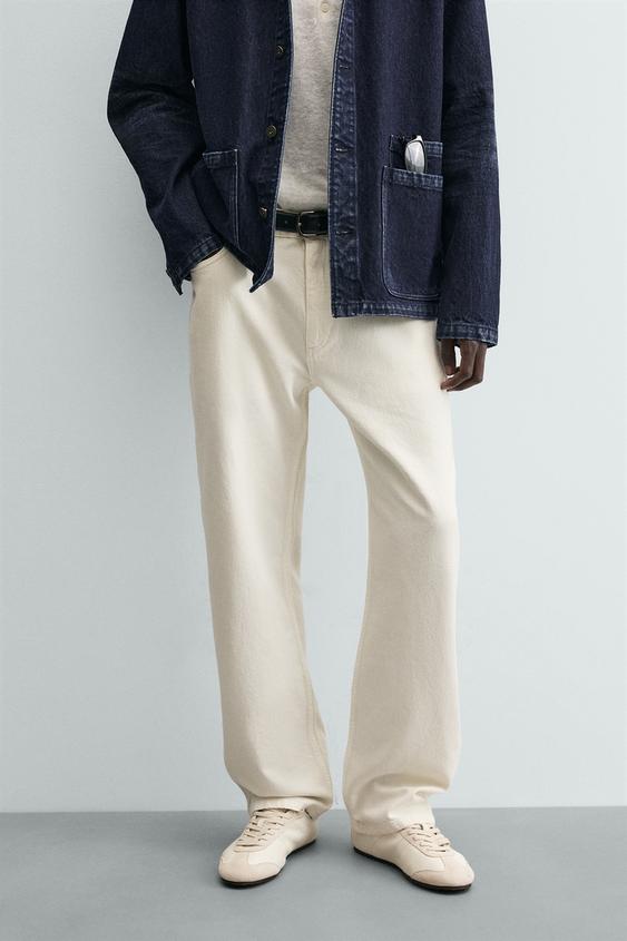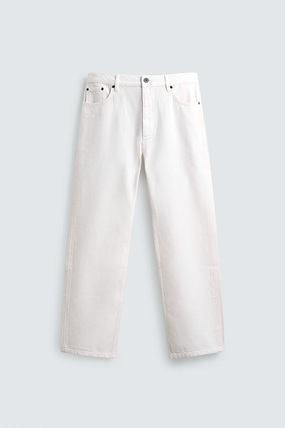 ZARA ДЖИНСЫ STRAIGHT FIT ИЗ ХЛОПКА И КОНОПЛИЙ, ЭКРЮ