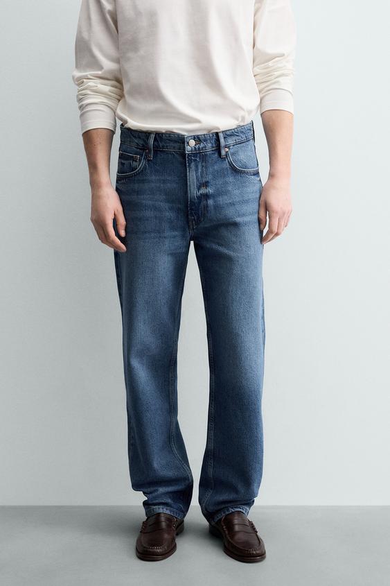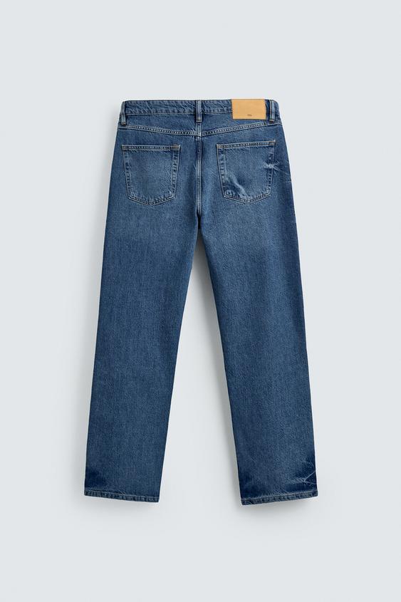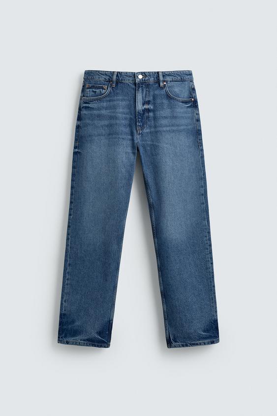 ZARA ДЖИНСЫ STRAIGHT FIT ИЗ ХЛОПКА И ЛИОЦЕЛЛА, СИНИЙ