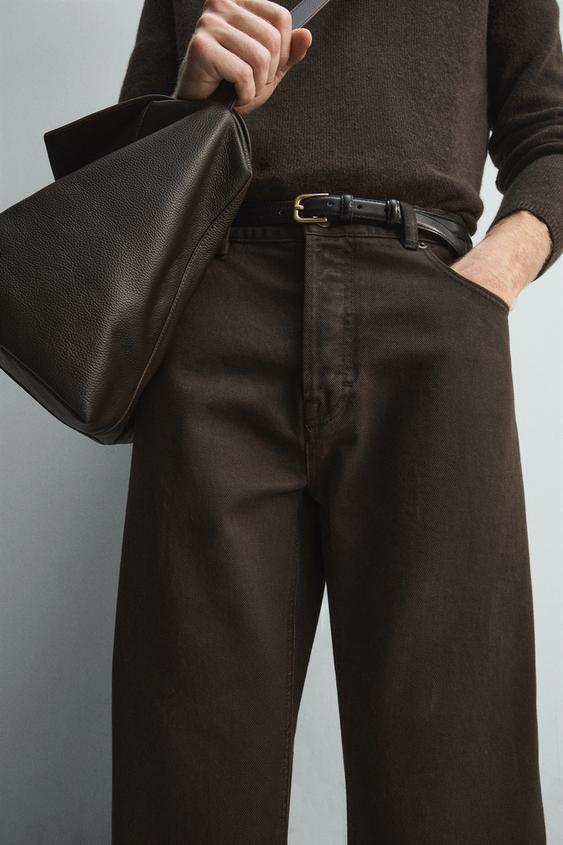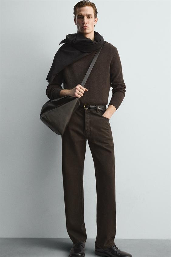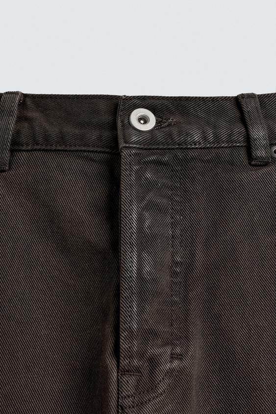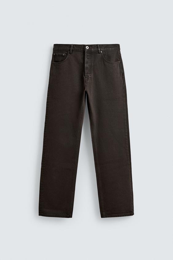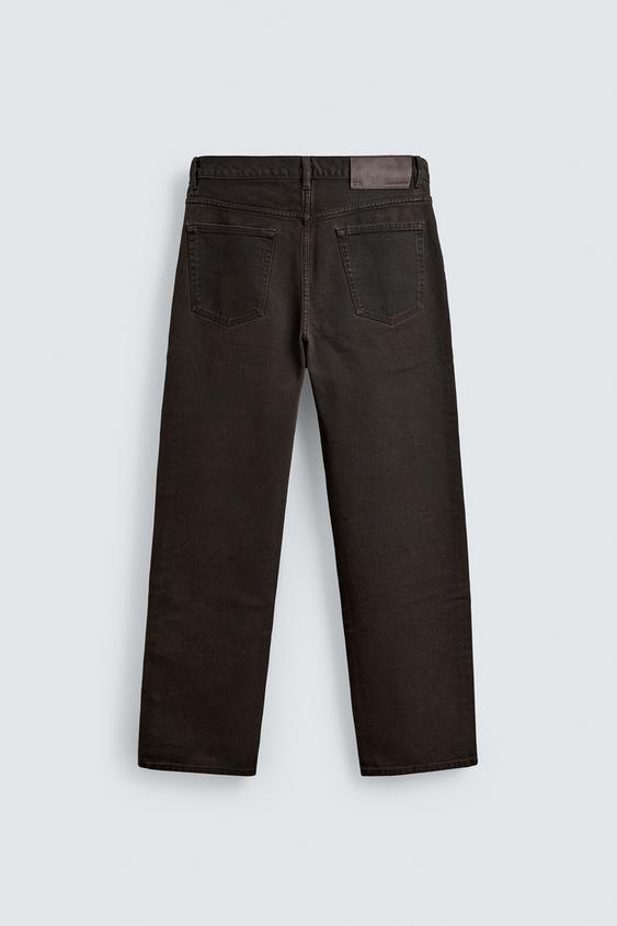 ZARA ДЖИНСЫ STRAIGHT FIT С ВОЩЕНЫМ ПОКРЫТИЕМ, КОРИЧНЕВЫЙ