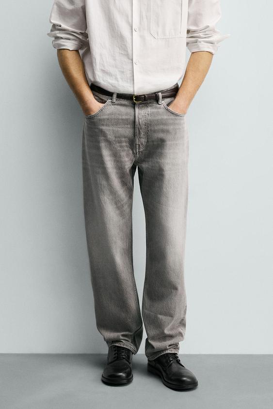 ZARA ДЖИНСЫ STRAIGHT FIT, СЕРЫЙ