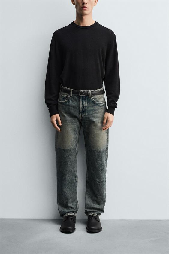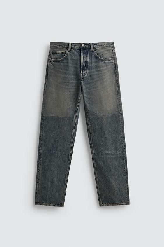 ZARA ДЖИНСЫ STRAIGHT FIT СО ШВАМИ, СИНИЙ
