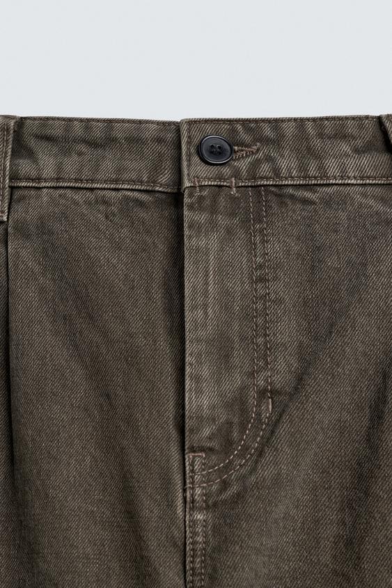 ZARA ДЖИНСЫ STRAIGHT FIT СО СКЛАДКАМИ, СЕРО-КОРИЧНЕВЫЙ