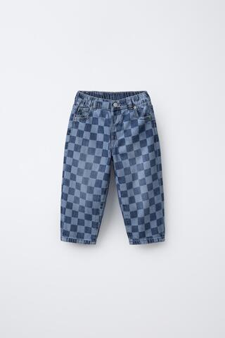 ZARA ДЖИНСЫ STRAIGHT В КЛЕТКУ «ШАХМАТНАЯ ДОСКА», СИНИЙ