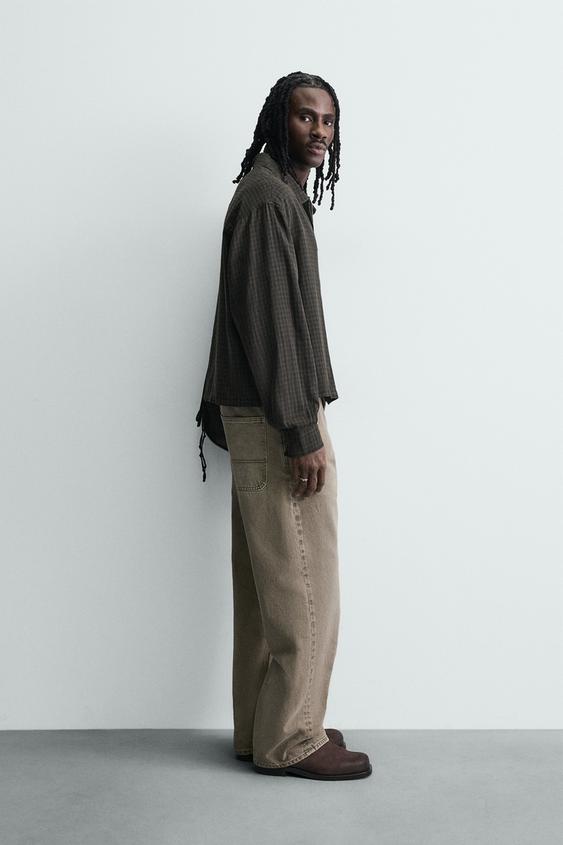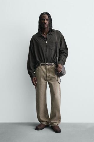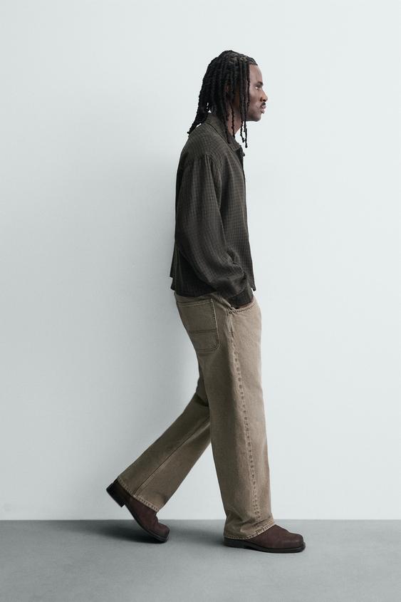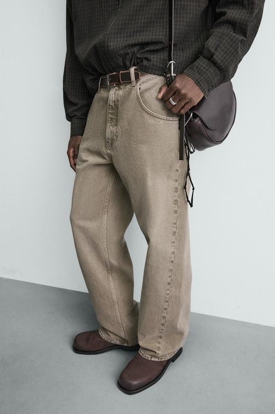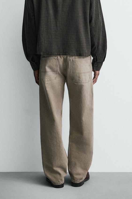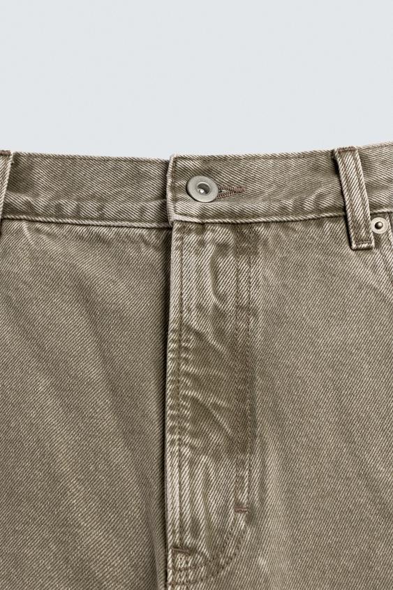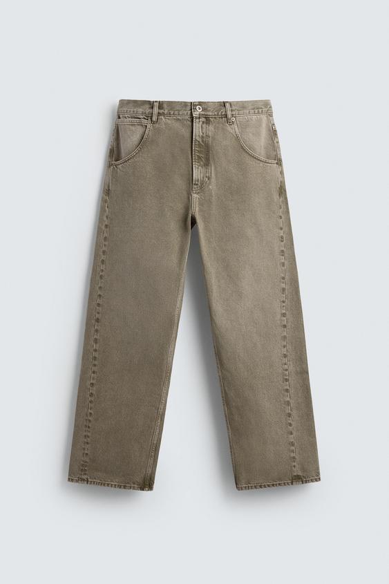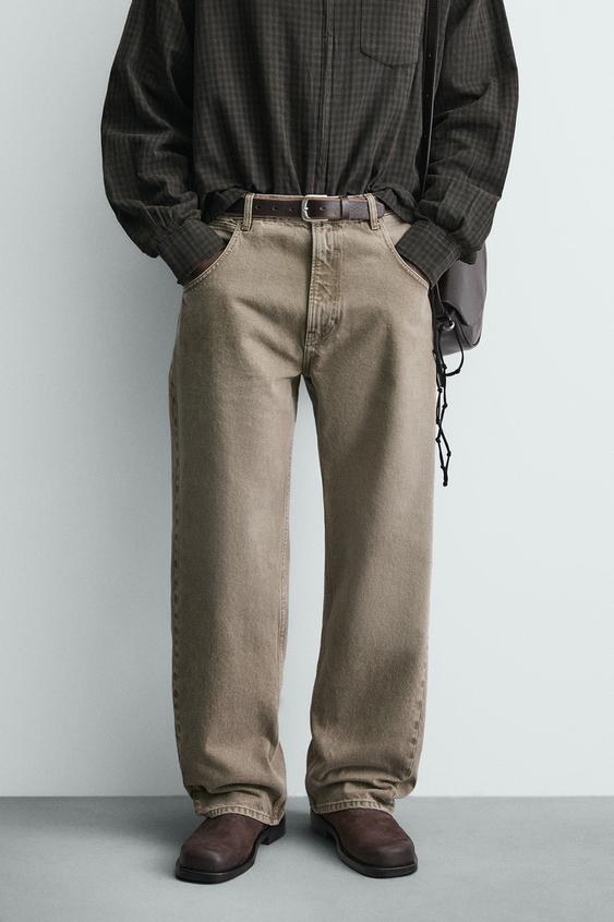 ZARA ДЖИНСЫ СВОБОДНОГО КРОЯ, ЭКРЮ/ХАКИ