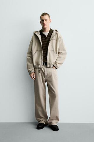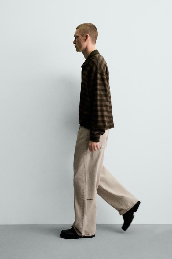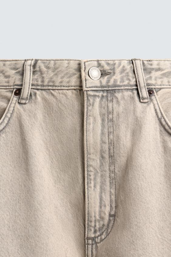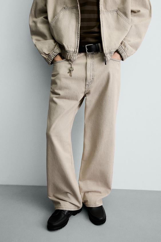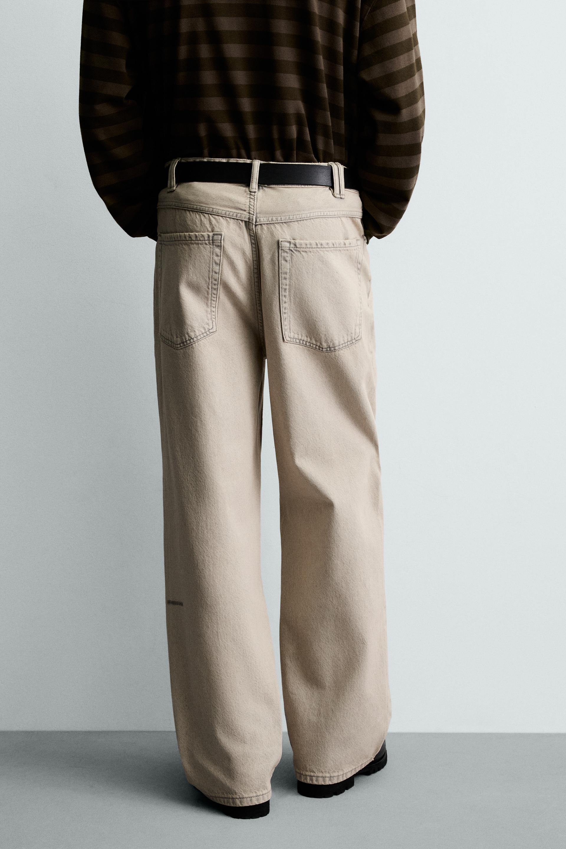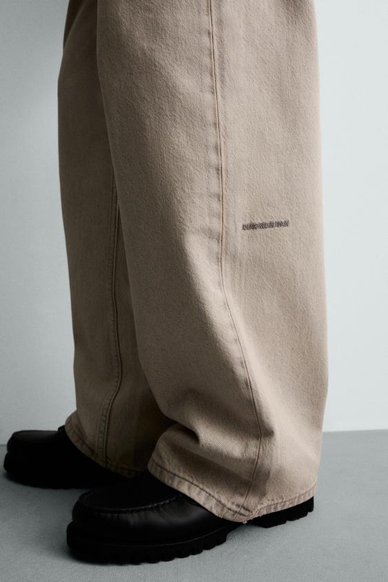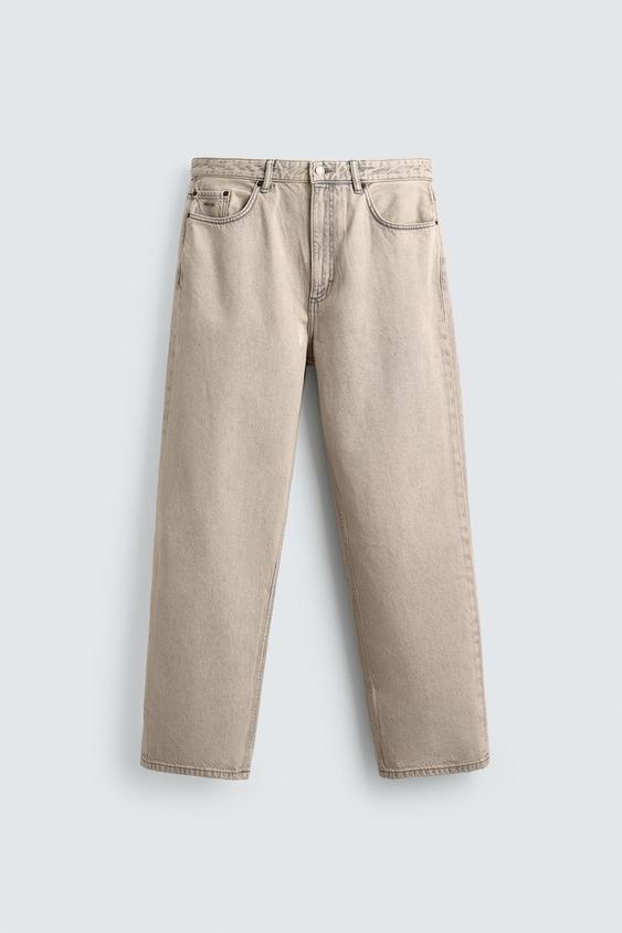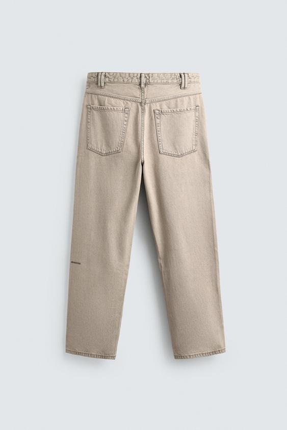 ZARA ДЖИНСЫ СВОБОДНОГО КРОЯ, ЭКРЮ/КОРИЧНЕВЫЙ