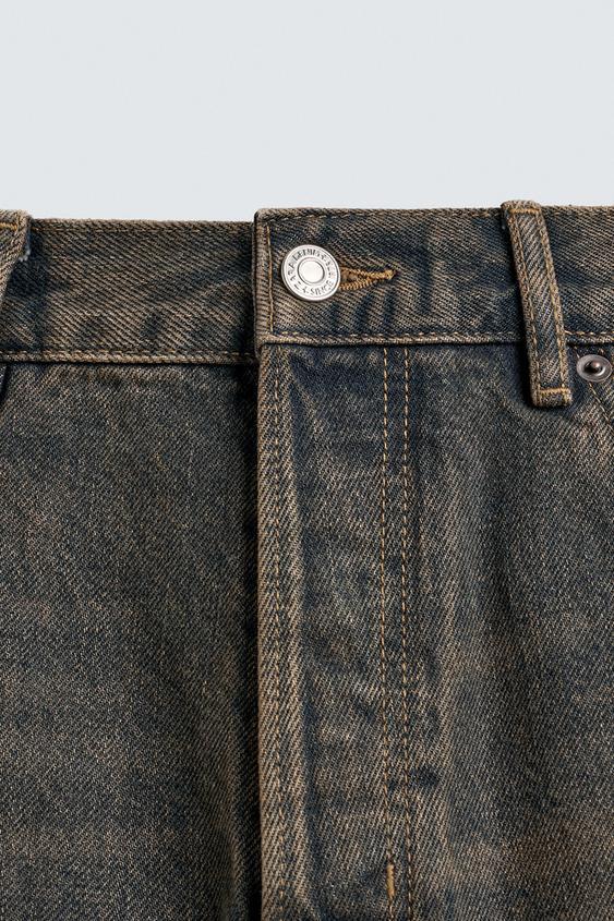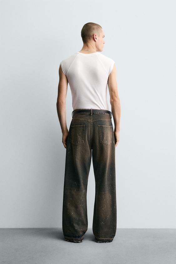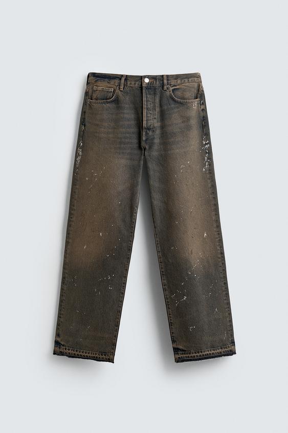 ZARA ДЖИНСЫ СВОБОДНОГО КРОЯ С БРЫЗГАМИ, ПЕСОЧНЫЙ/СИНИЙ