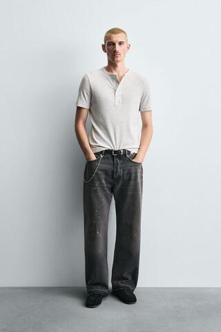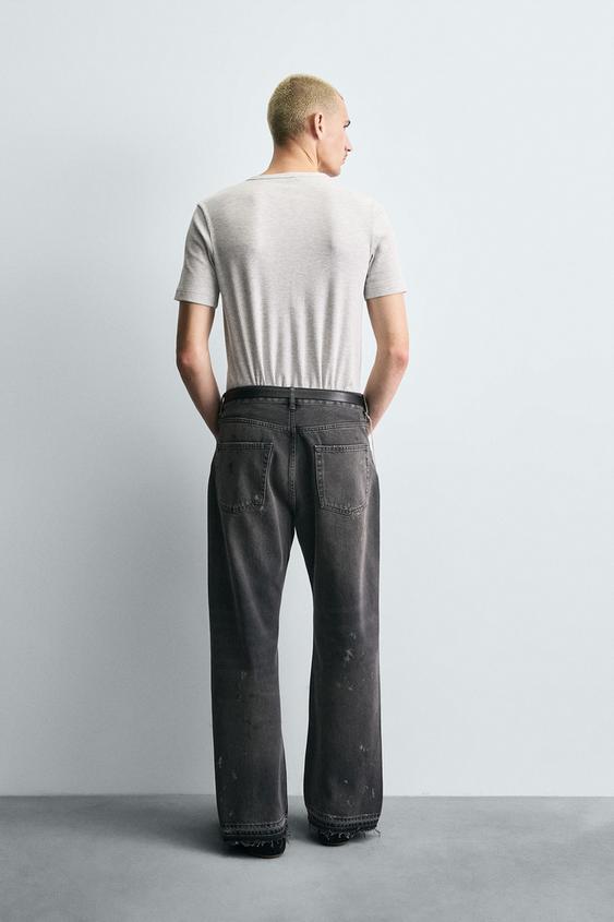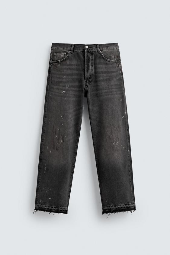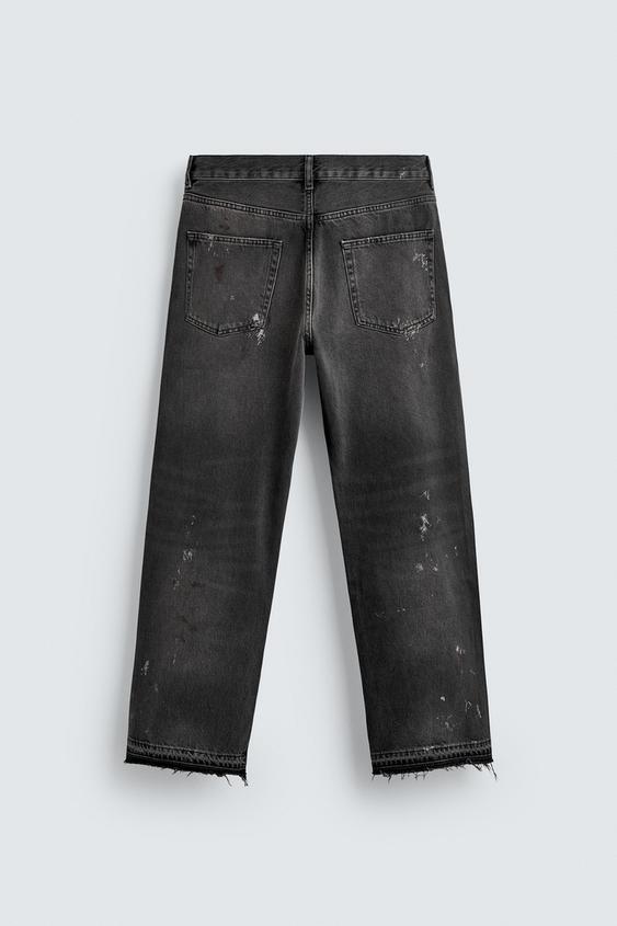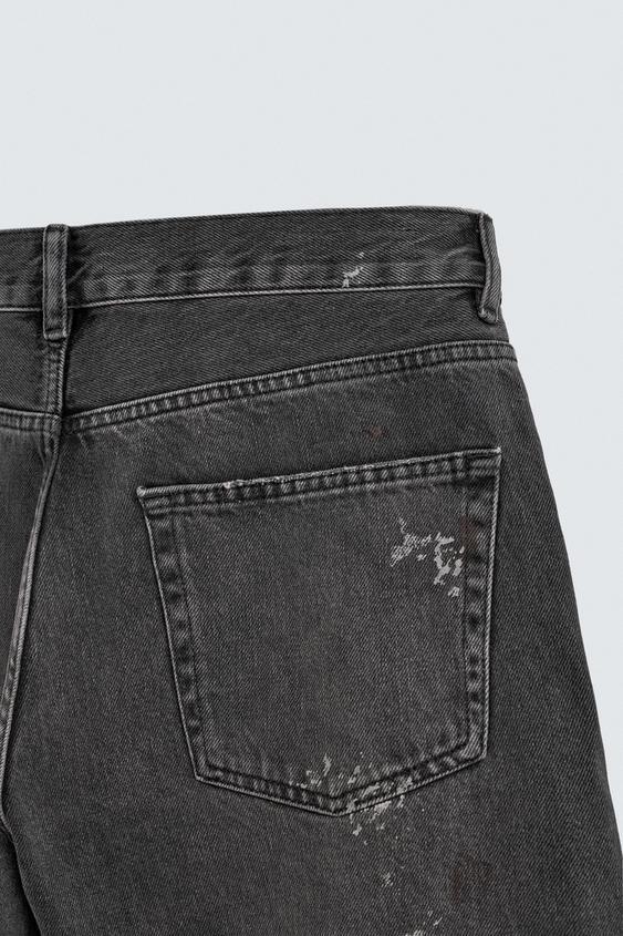 ZARA ДЖИНСЫ СВОБОДНОГО КРОЯ С БРЫЗГАМИ, УГОЛЬНЫЙ