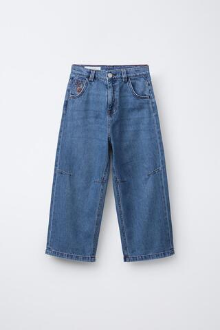 ZARA ДЖИНСЫ СВОБОДНОГО КРОЯ С ВЫШИВКОЙ, ВЫЦВЕТШИЙ СИНИЙ
