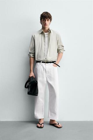 ZARA ДЖИНСЫ TAPERED WIDE FIT, БЕЛЫЙ