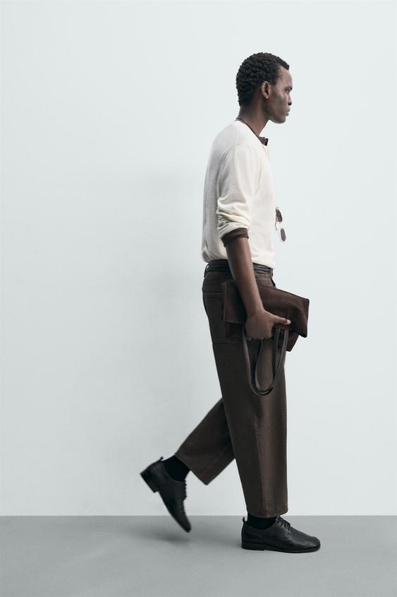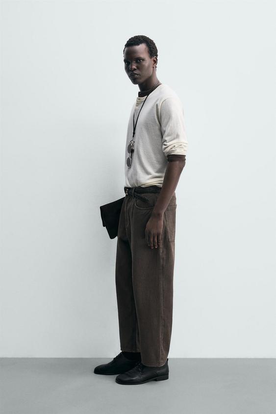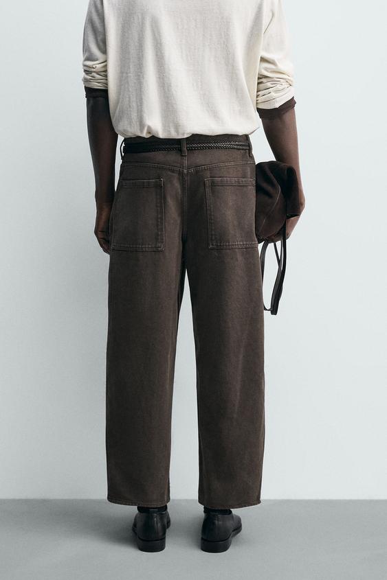 ZARA ДЖИНСЫ TAPERED WIDE FIT, КОРИЧНЕВЫЙ