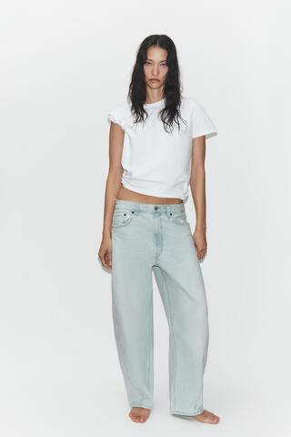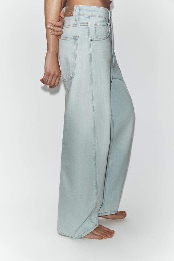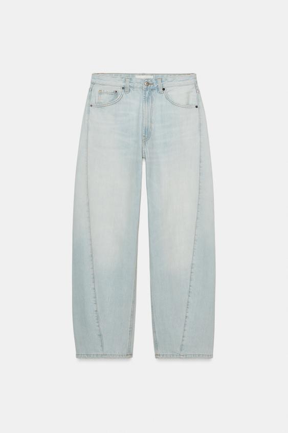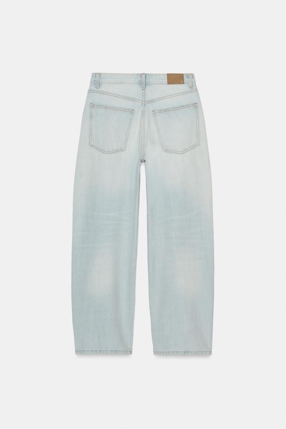 ZARA ДЖИНСЫ TRF BAGGY BALLOON СО СРЕДНЕЙ ПОСАДКОЙ, ГОЛУБОЙ