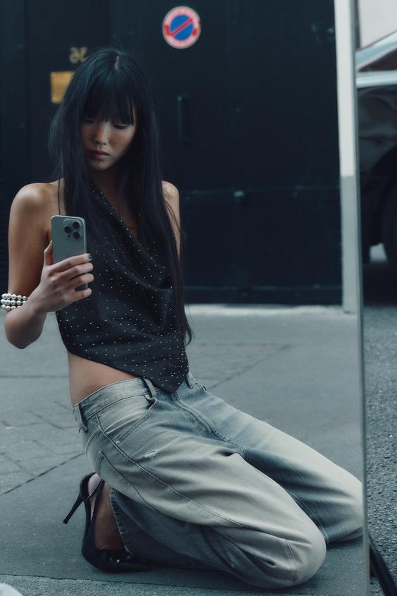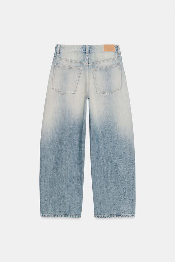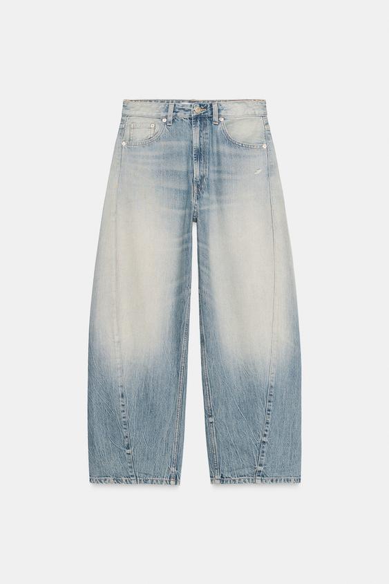 ZARA ДЖИНСЫ TRF BAGGY BALLOON СО СРЕДНЕЙ ПОСАДКОЙ, ГОЛУБОЙ