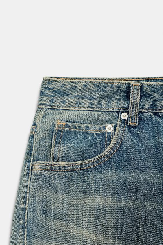 ZARA ДЖИНСЫ TRF BAGGY BALLOON СО СРЕДНЕЙ ПОСАДКОЙ, ЛИНЯЛЫЙ СИНИЙ