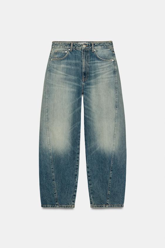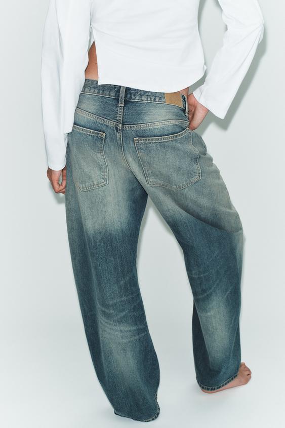 ZARA ДЖИНСЫ TRF BAGGY BALLOON СО СРЕДНЕЙ ПОСАДКОЙ, ЛИНЯЛЫЙ СИНИЙ